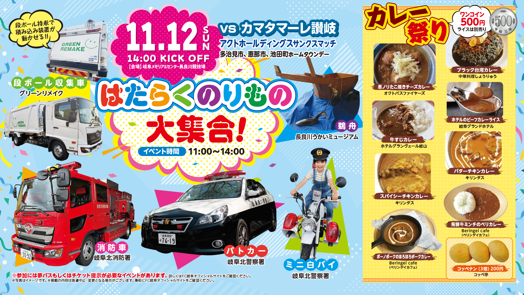 11月12日(日)アクトホールディングスサンクスマッチ カマタマーレ讃岐戦「池田町ホームタウンデー」では、池田町在住の方500名様、池田町商工会の所属会員200名様を無料でご招待いたします。ぜひ多くの方にスタジアムにご来場いただきまして、FC岐阜を応援していただければ幸いです。