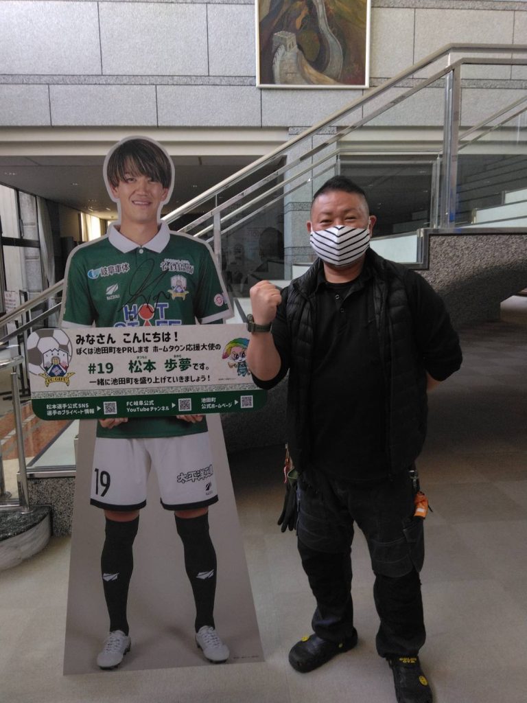 (池田町ホームタウン応援大使 松本 歩夢 選手 等身大パネル)