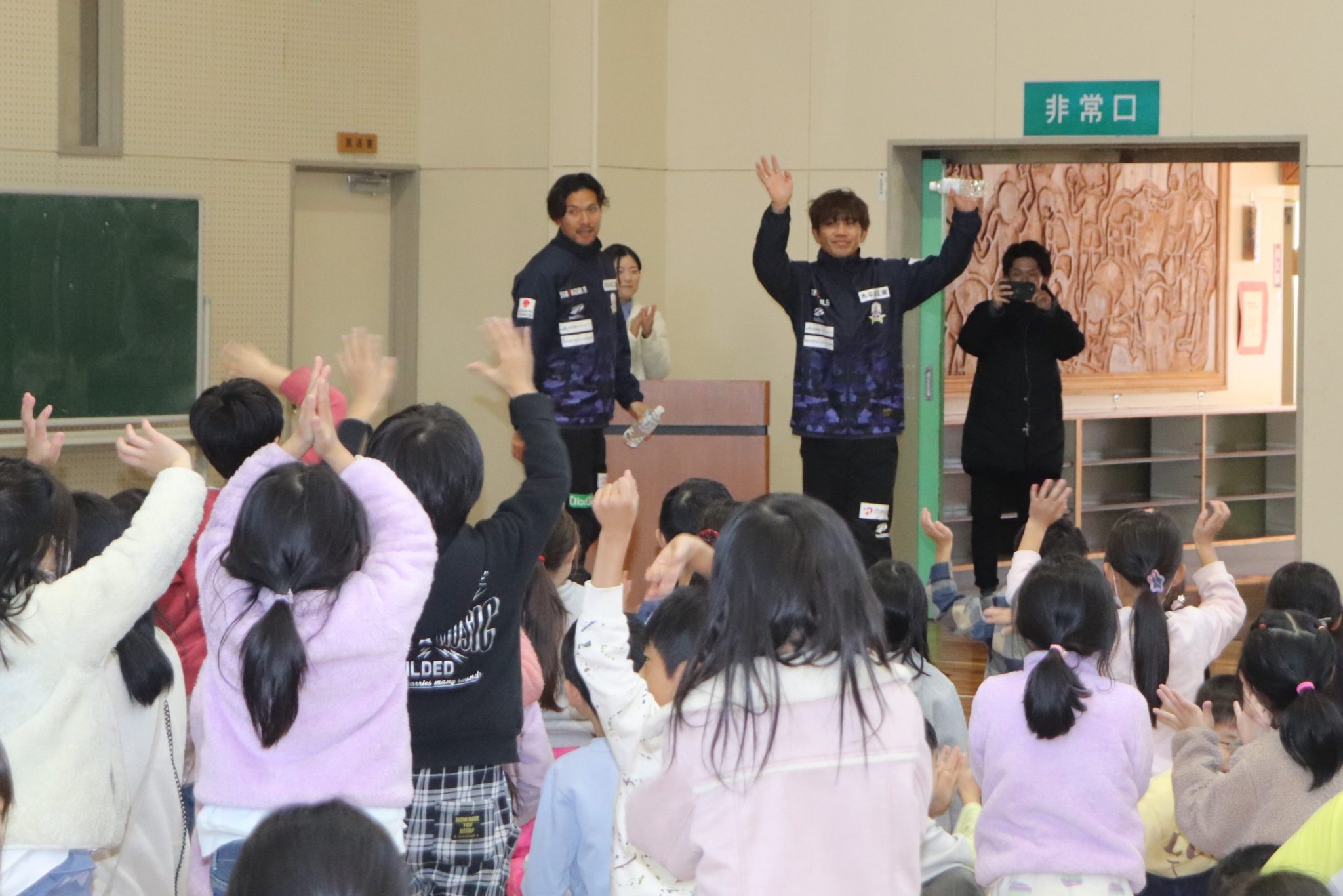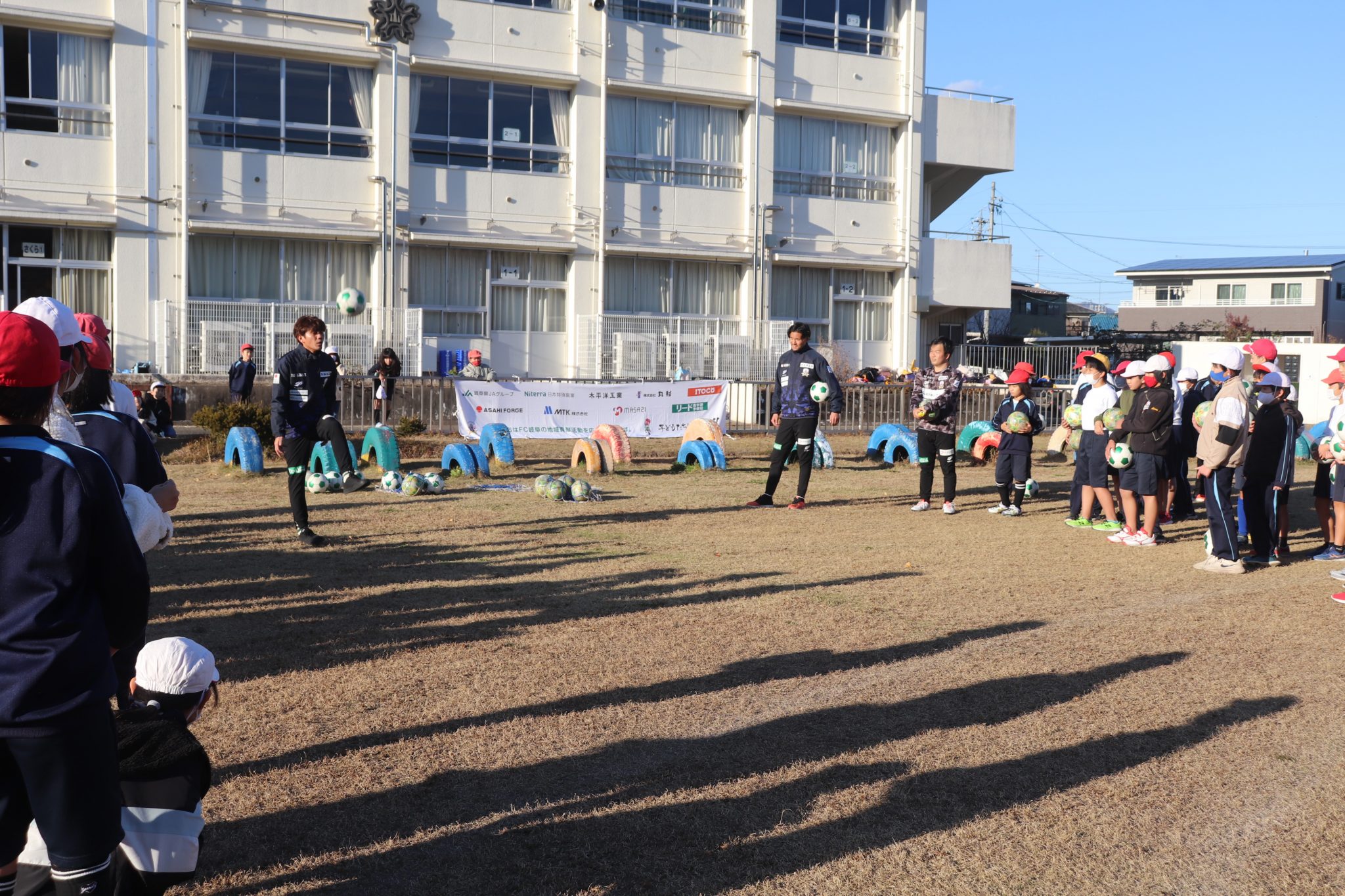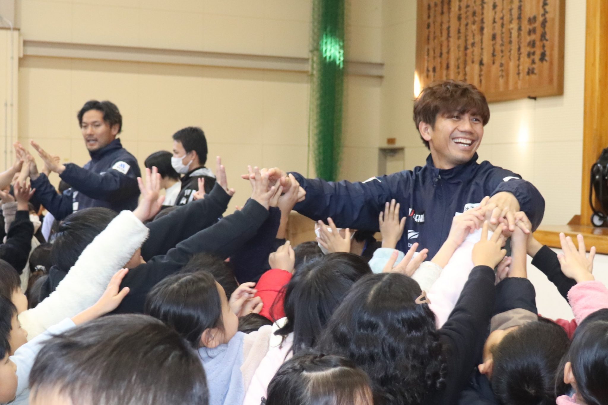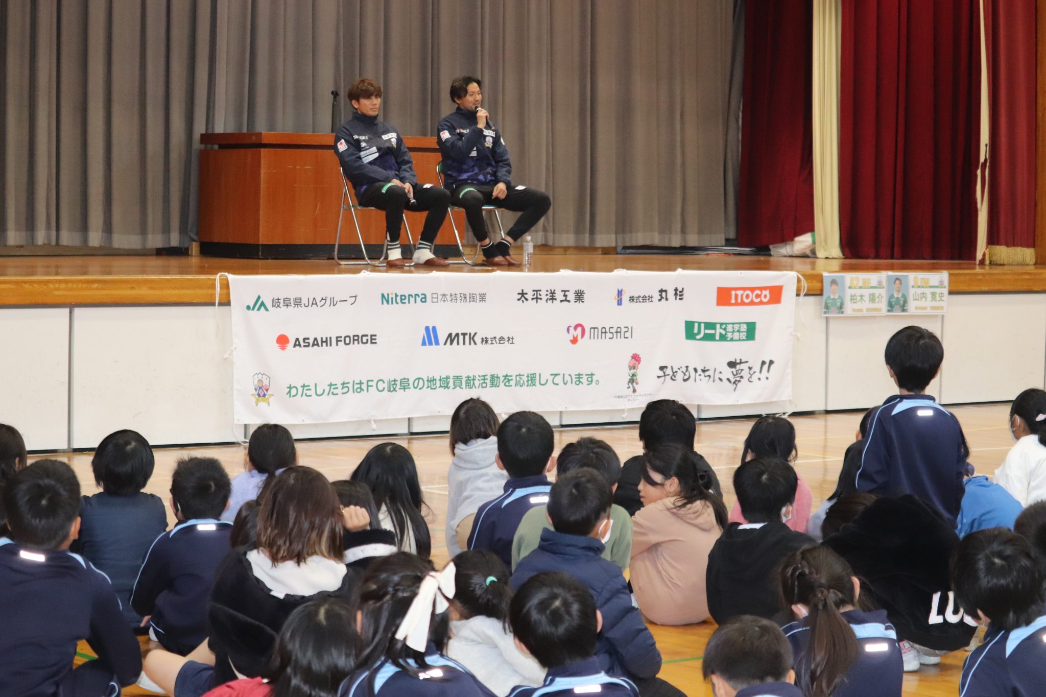 12月4日(月)関市立桜ヶ丘小学校に柏木陽介選手と山内寛史選手が訪問し、全校集会にて子どもたちに向けて講話をさせていただきました。