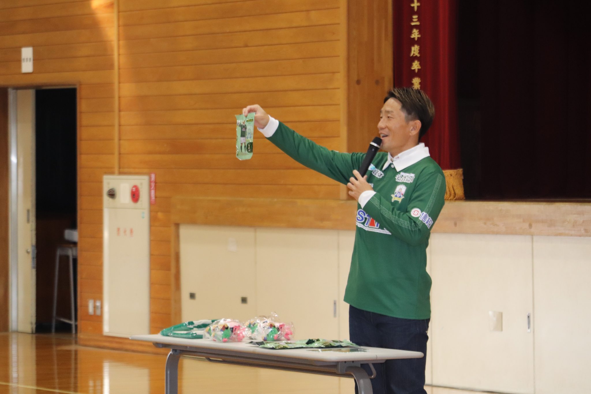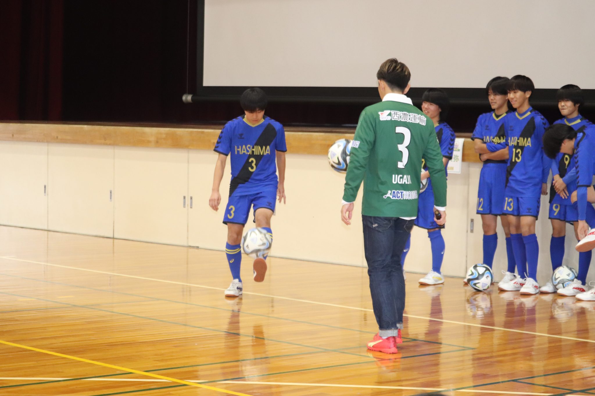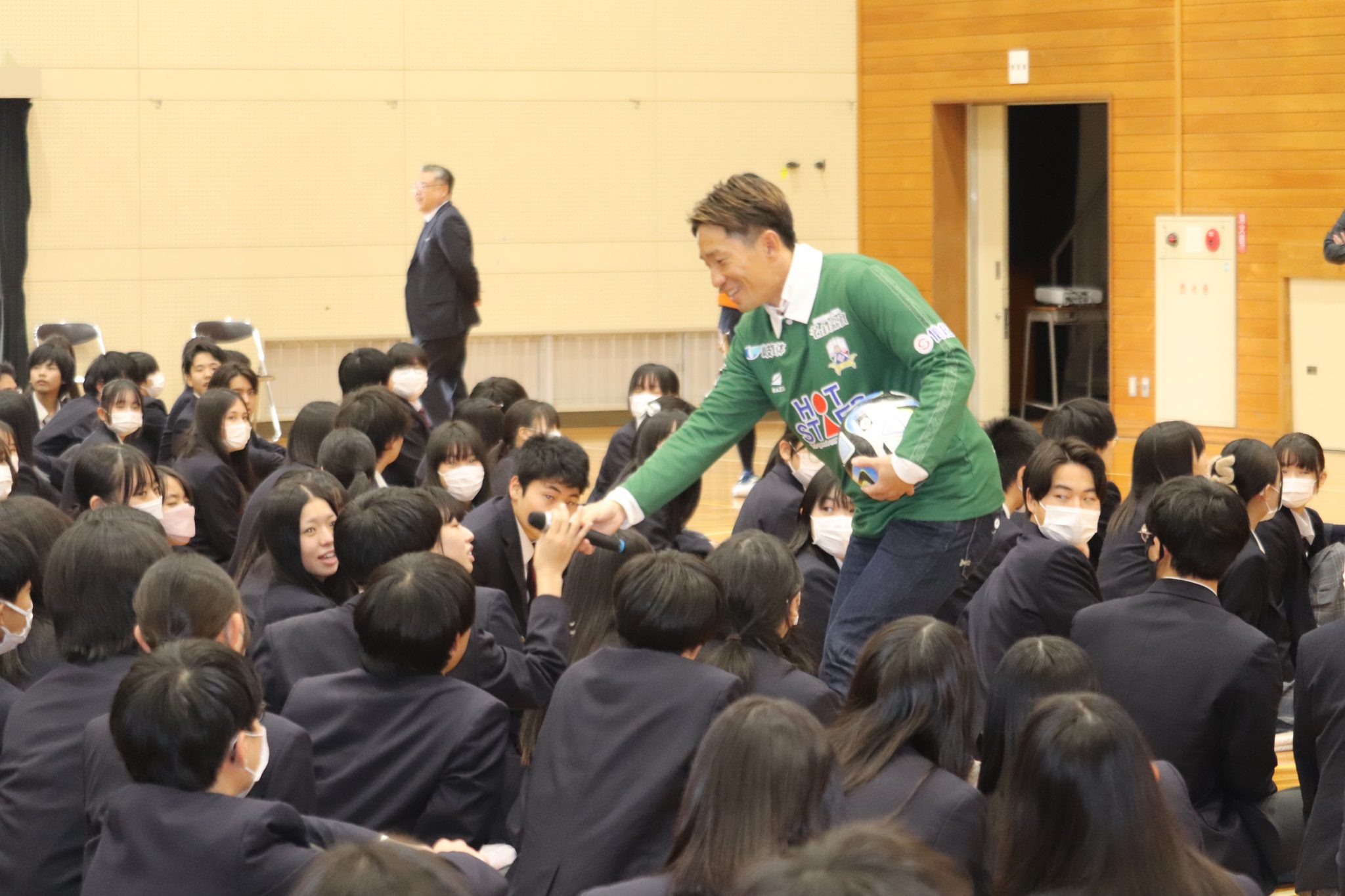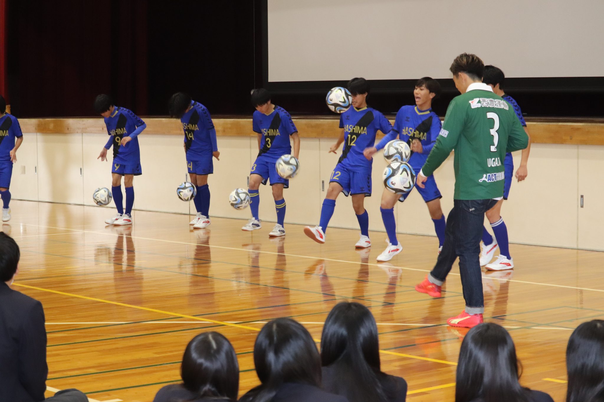 講話の後は、サッカー部生徒とのリフティング対決や、じゃんけん大会などで盛り上がりました。