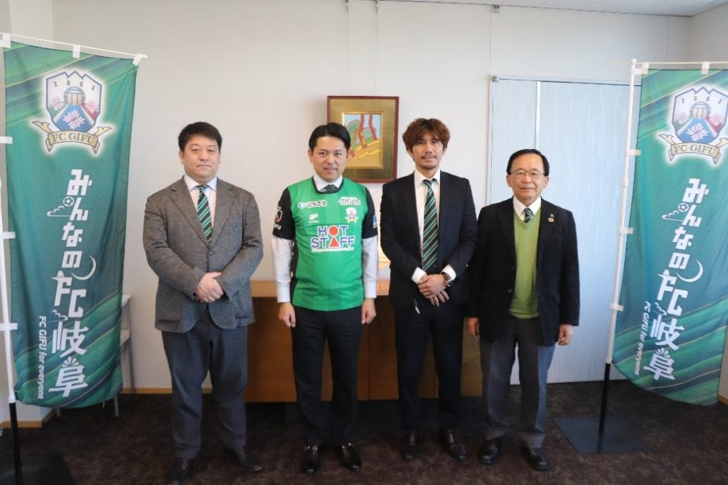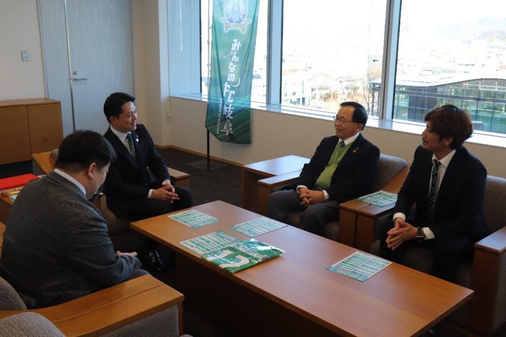 2024明治安田J3リーグの開幕を迎えるにあたり、令和6年2月16日(金)に、宮田 博之 会長、小松 裕志 社長、柏木 陽介 アンバサダーの3名が岐阜市役所を表敬訪問し、柴橋 正直 岐阜市長にご挨拶させていただきました。