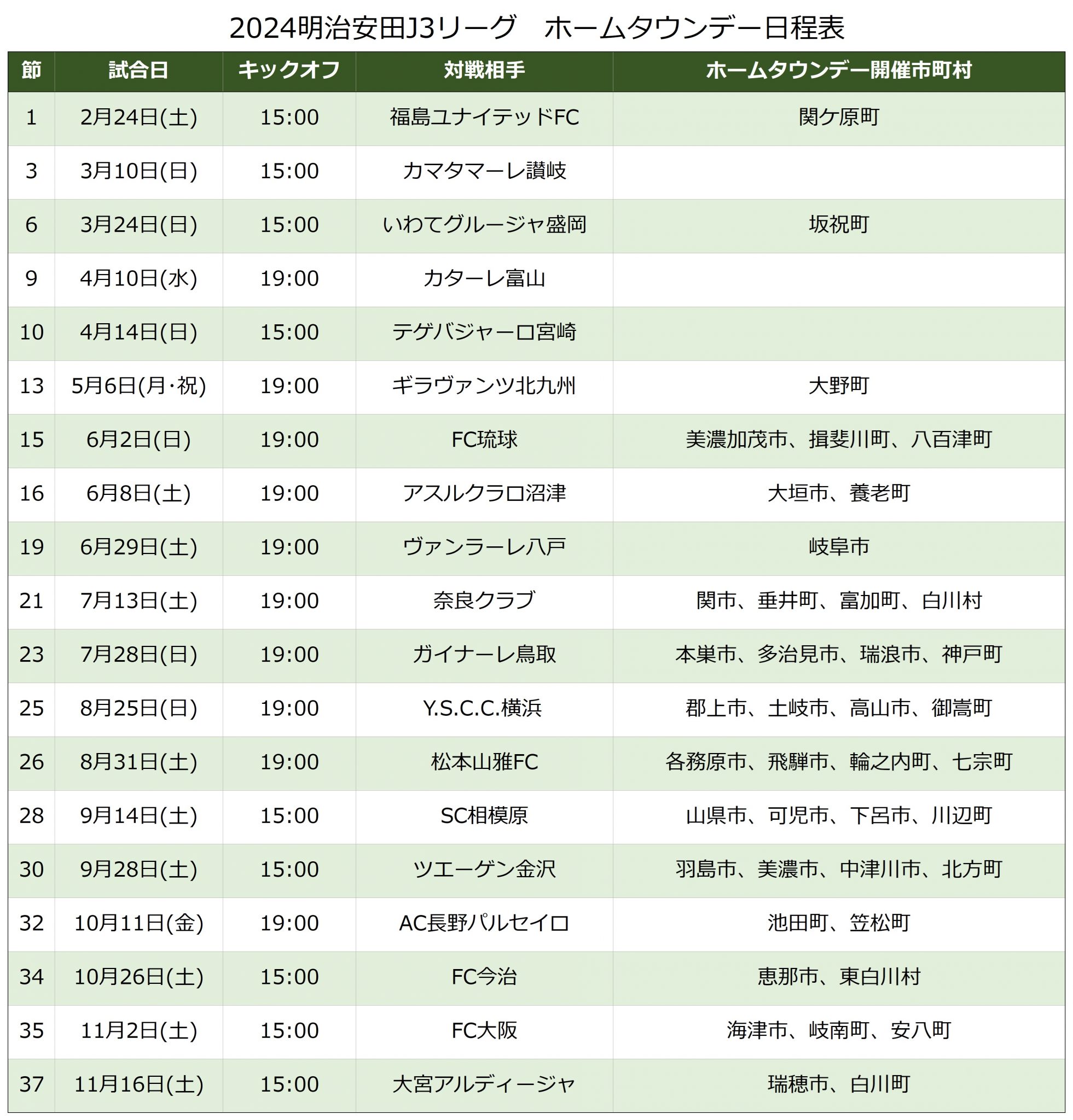 2024シーズン FC岐阜「ホームタウンデー開催市町村」決定