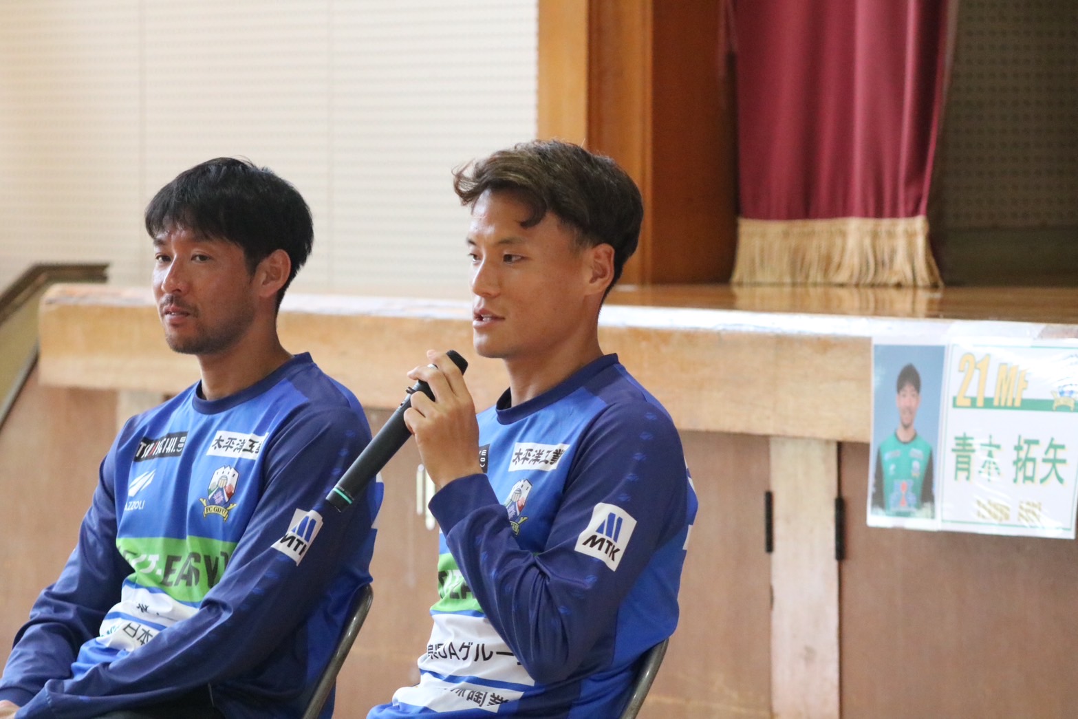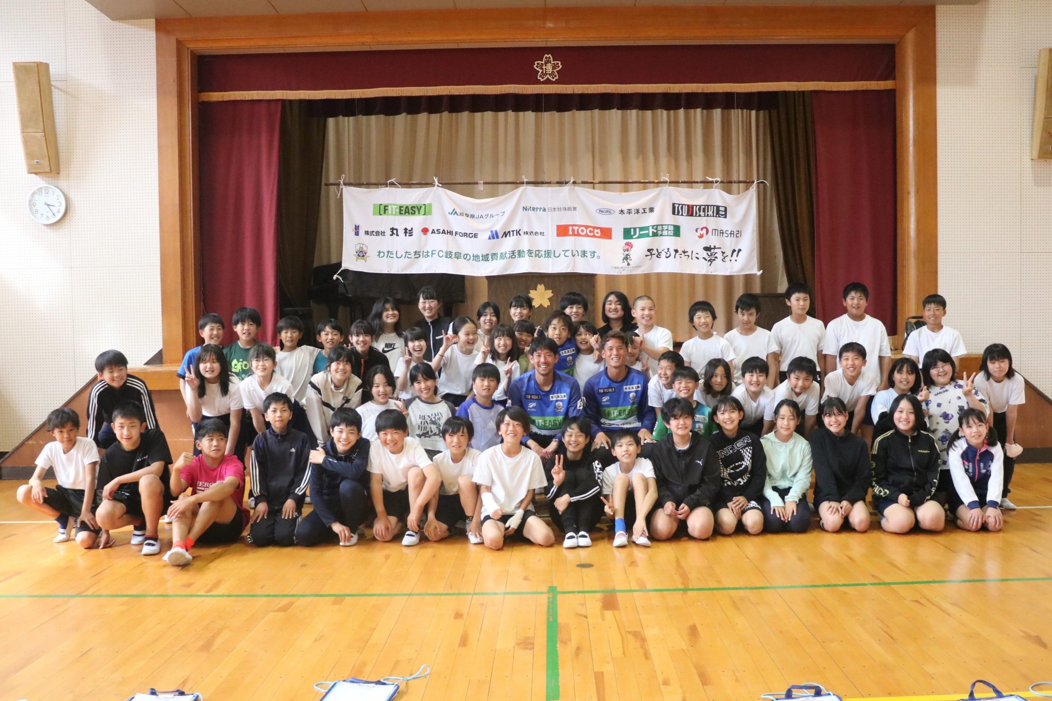 5月22日(水)に関市立博愛小学校にて「子どもたちに夢を‼ 特別授業in博愛小学校」を開催し、トップチームの青木 拓矢 選手、川上 竜 選手が博愛小学校5、6年生の子どもたち60名と交流しました。