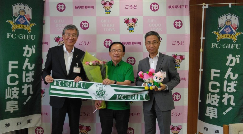 「神戸町ホームタウンデー」開催にあたり、7月22日(月)に宮田 博之 会長が神戸町役場を訪問し、藤井 弘之 神戸町長と金指 義樹 副町長へご挨拶させていただきました。