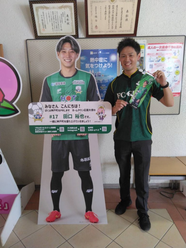 今シーズンは、田口 裕也 選手がホームタウン応援大使として、神戸町と相互に連携し、SNSでの情報配信や観光や地元グルメ・イベントなどの魅力をPRしていきます。