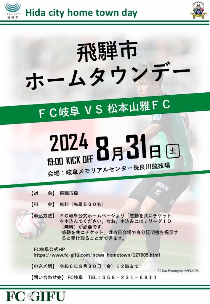 「飛騨市民500名様と神岡商工会議所・古川町商工会会員200名様」が無料で観戦できる「感動を共にチケット」(ともチケ)で、多くの飛騨市民の方、神岡商工会議所と古川町商工会の方々のご来場をお待ちしています。