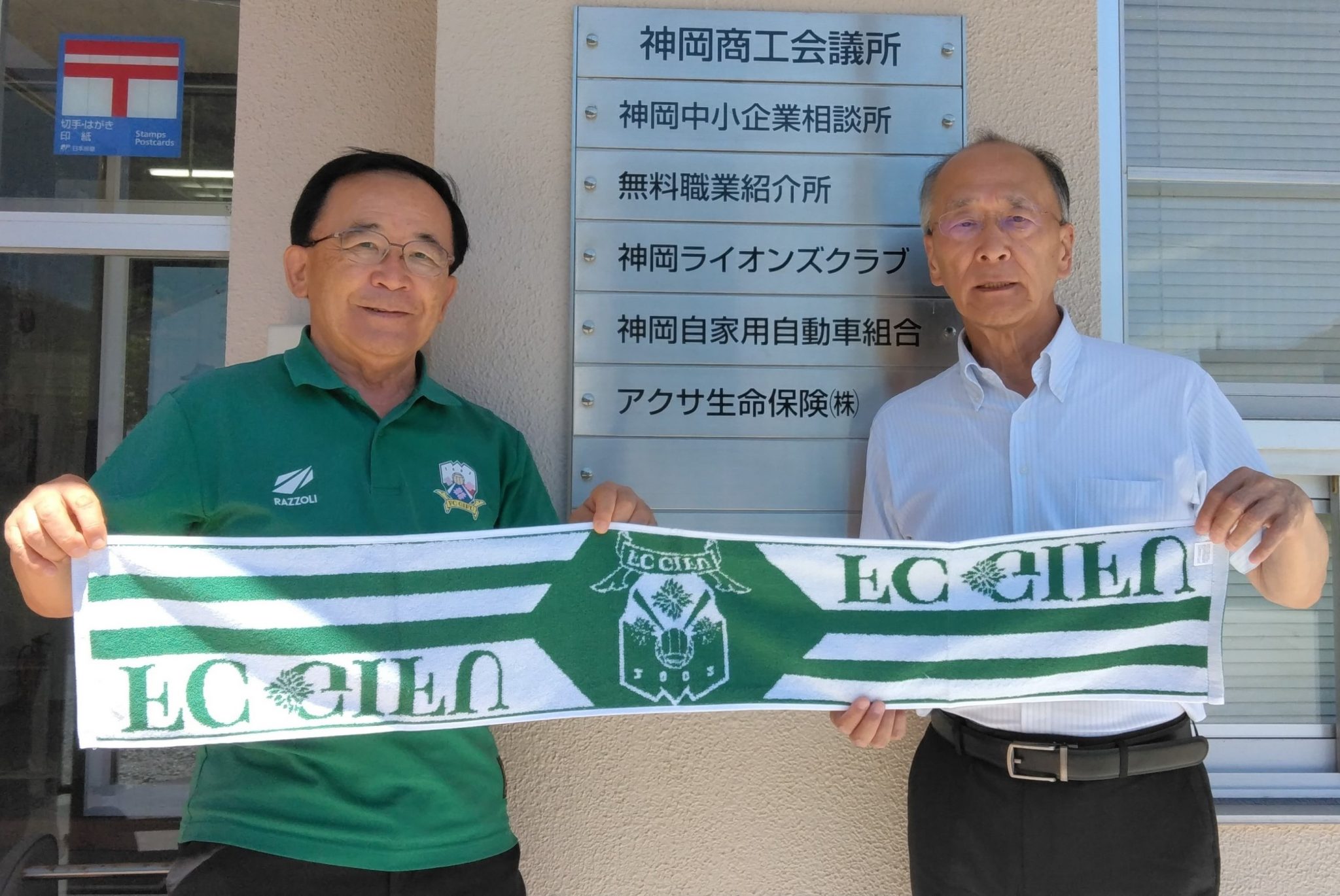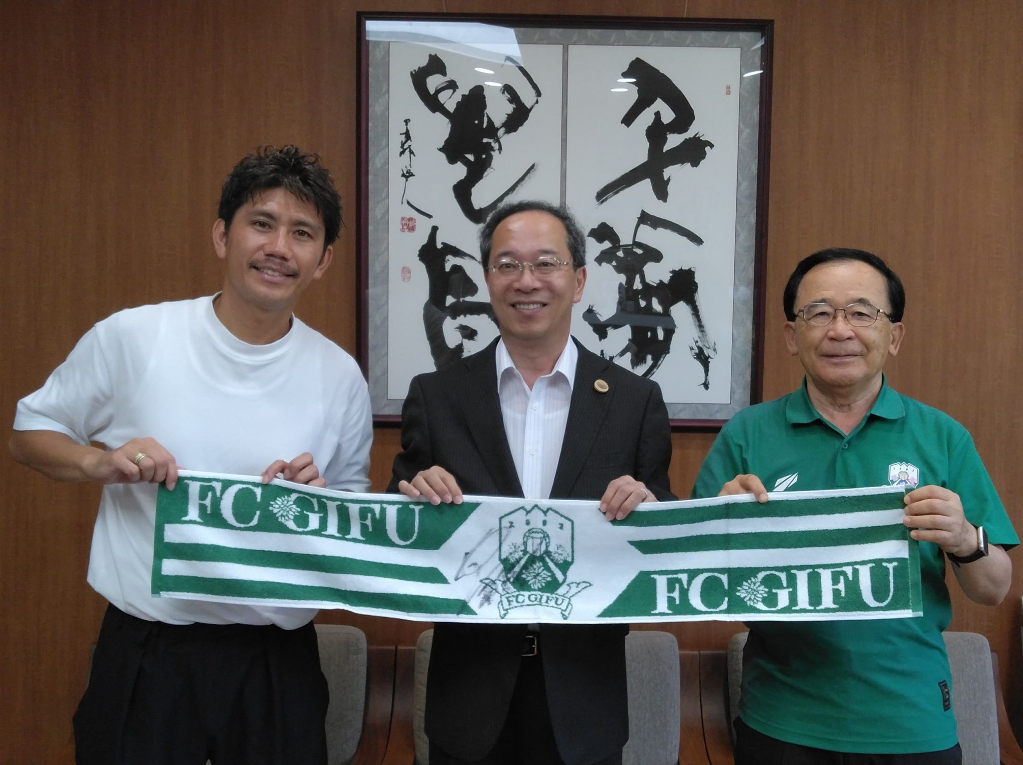 「飛騨市ホームタウンデー」開催にあたり、8月2日(金)に宮田 博之 会長と柏木 陽介 クラブアンバサダーが飛騨市役所を訪問し、都竹 淳也 飛騨市長へご挨拶させていただきました。
