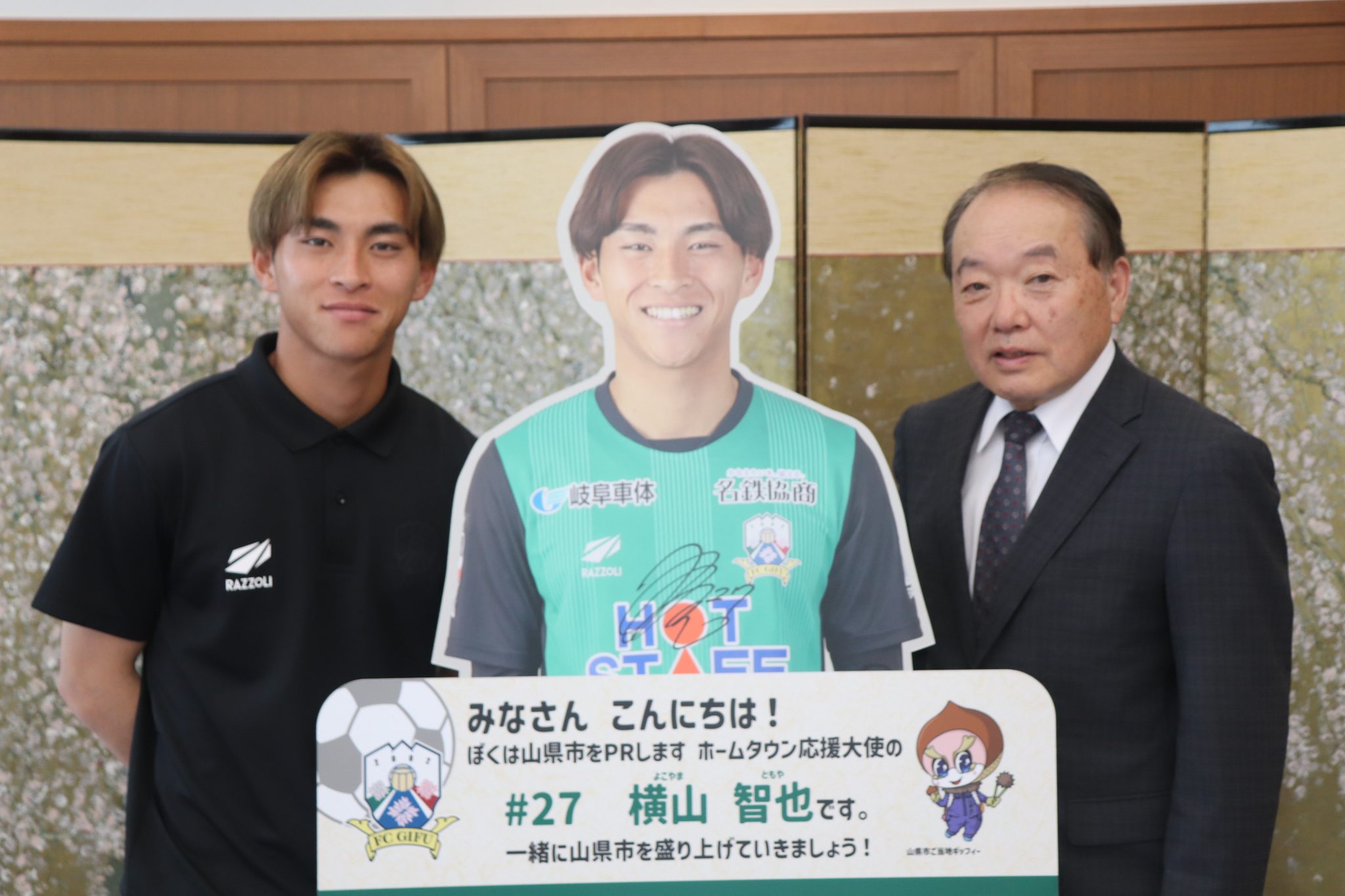山県市公式ホームページ「FC岐阜 山県市ホームタウン応援大使の横山智也選手が表敬訪問」はコチラ