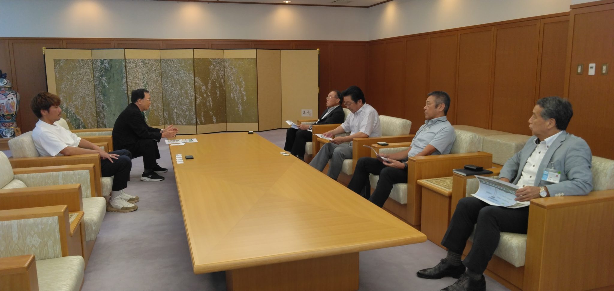 「山県市ホームタウンデー」開催にあたり、9月11日(水)に宮田 博之 会長と柏木 陽介 クラブアンバサダーが山県市役所を訪問し、林 宏優 山県市長と宇野 睦 山県市商工会長へご挨拶させていただきました。