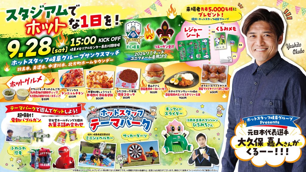 今シーズンは、横山 智也 選手がホームタウン応援大使として、北方町と相互に連携し、SNSでの情報配信や観光や地元グルメ・イベントなどの魅力をPRしていきます。