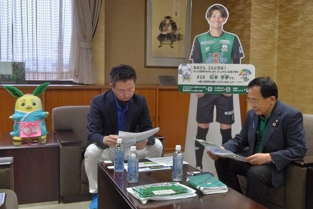 「池田町ホームタウンデー」開催にあたり、10月3日(木)に宮田 博之 会長が池田町役場を訪問し、竹中 誉 池田町長へご挨拶させていただきました。