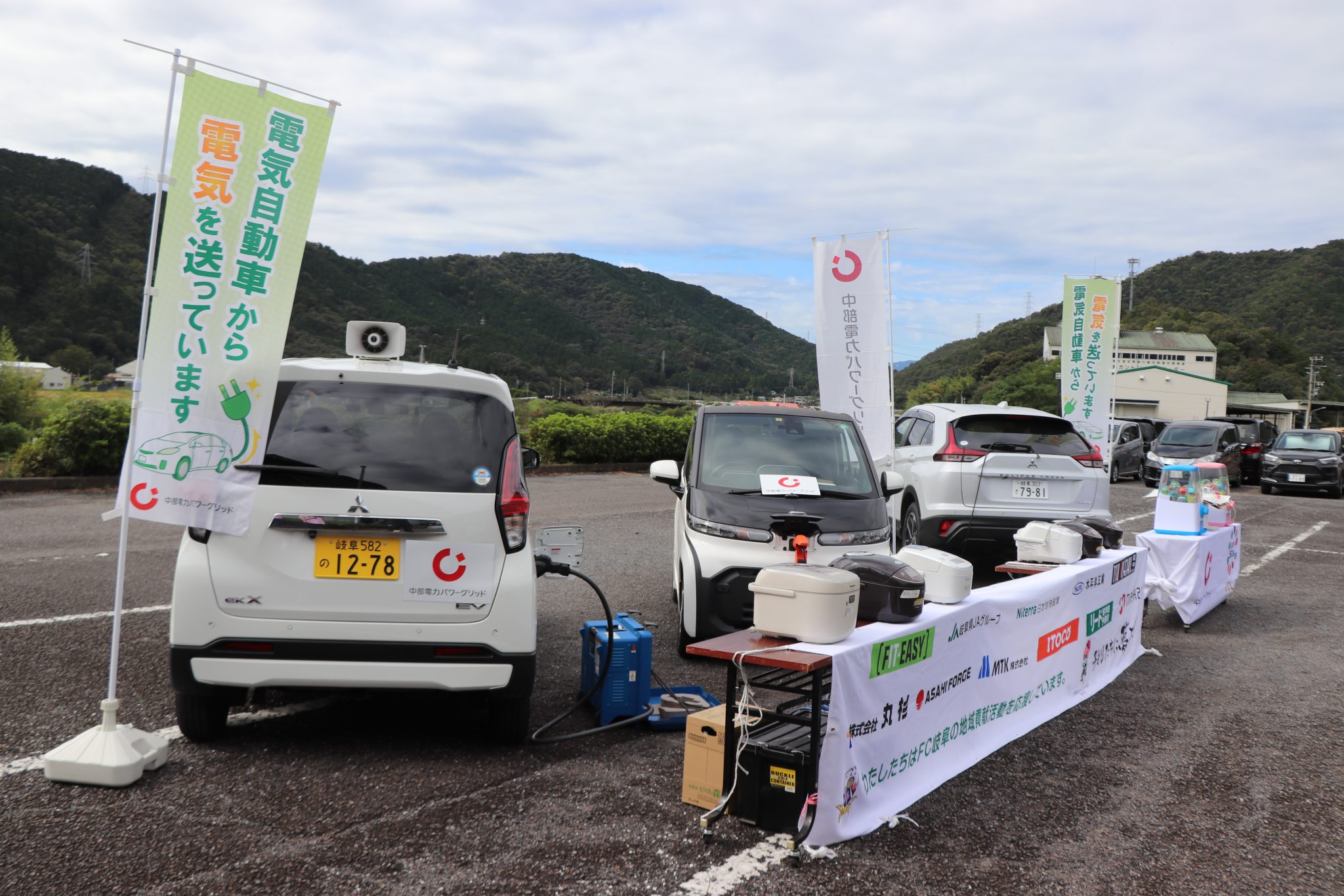 中部電力パワーグリット株式会社様ご協力のもと、電気自動車から給電してご飯を炊きます。