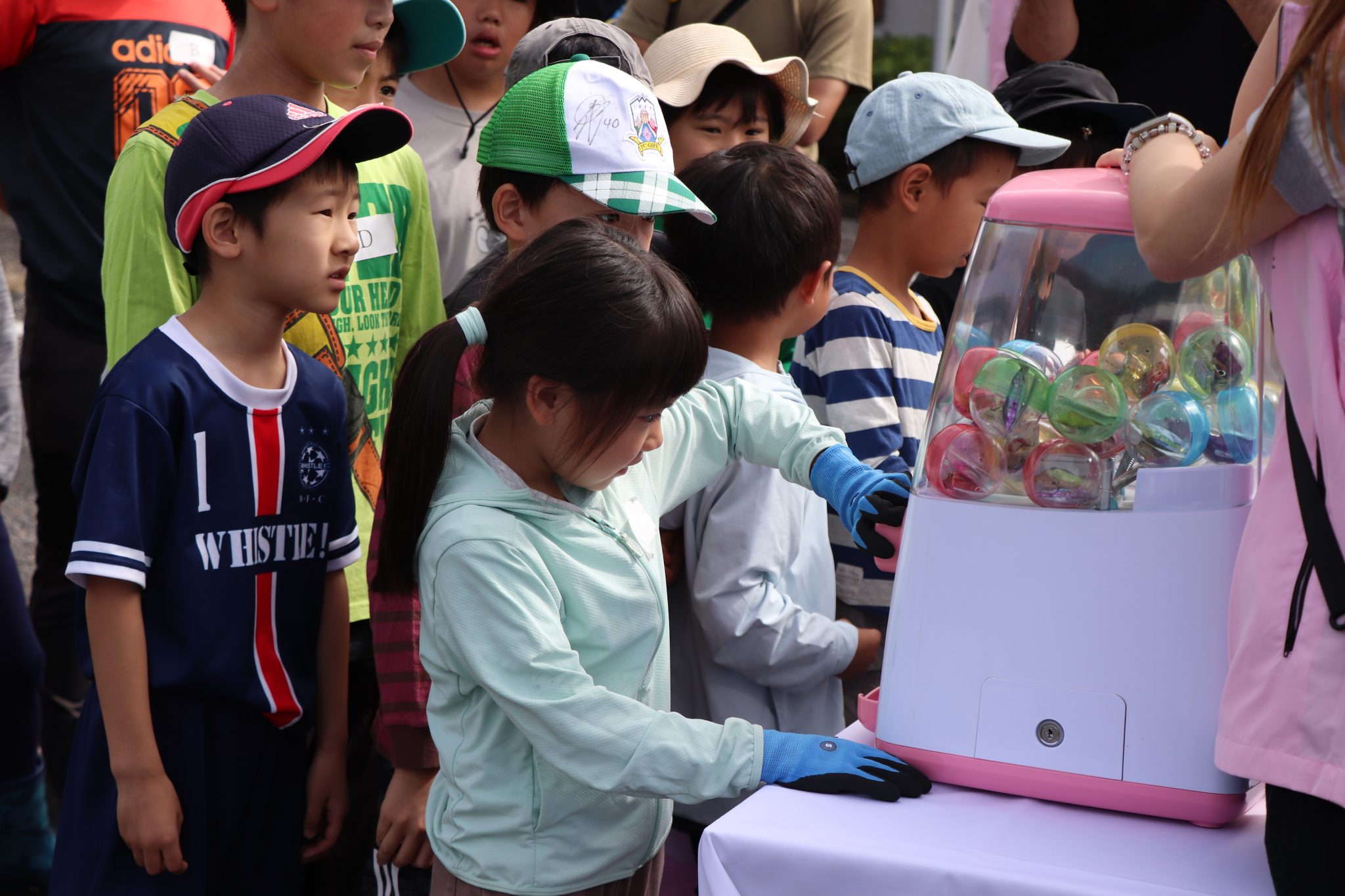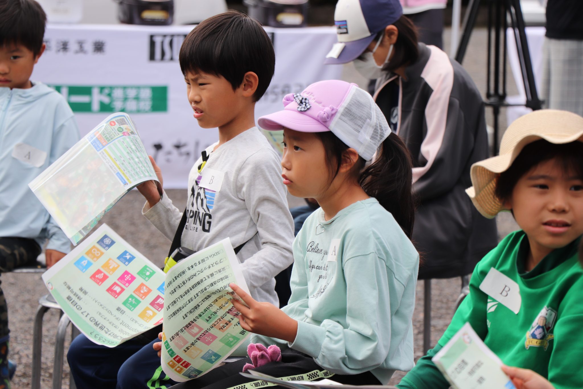 3問正解した子どもたちには「ガチャガチャ券」がもらえ、お菓子と今日からできるSDGsアドバイスメモがプレゼントされました。