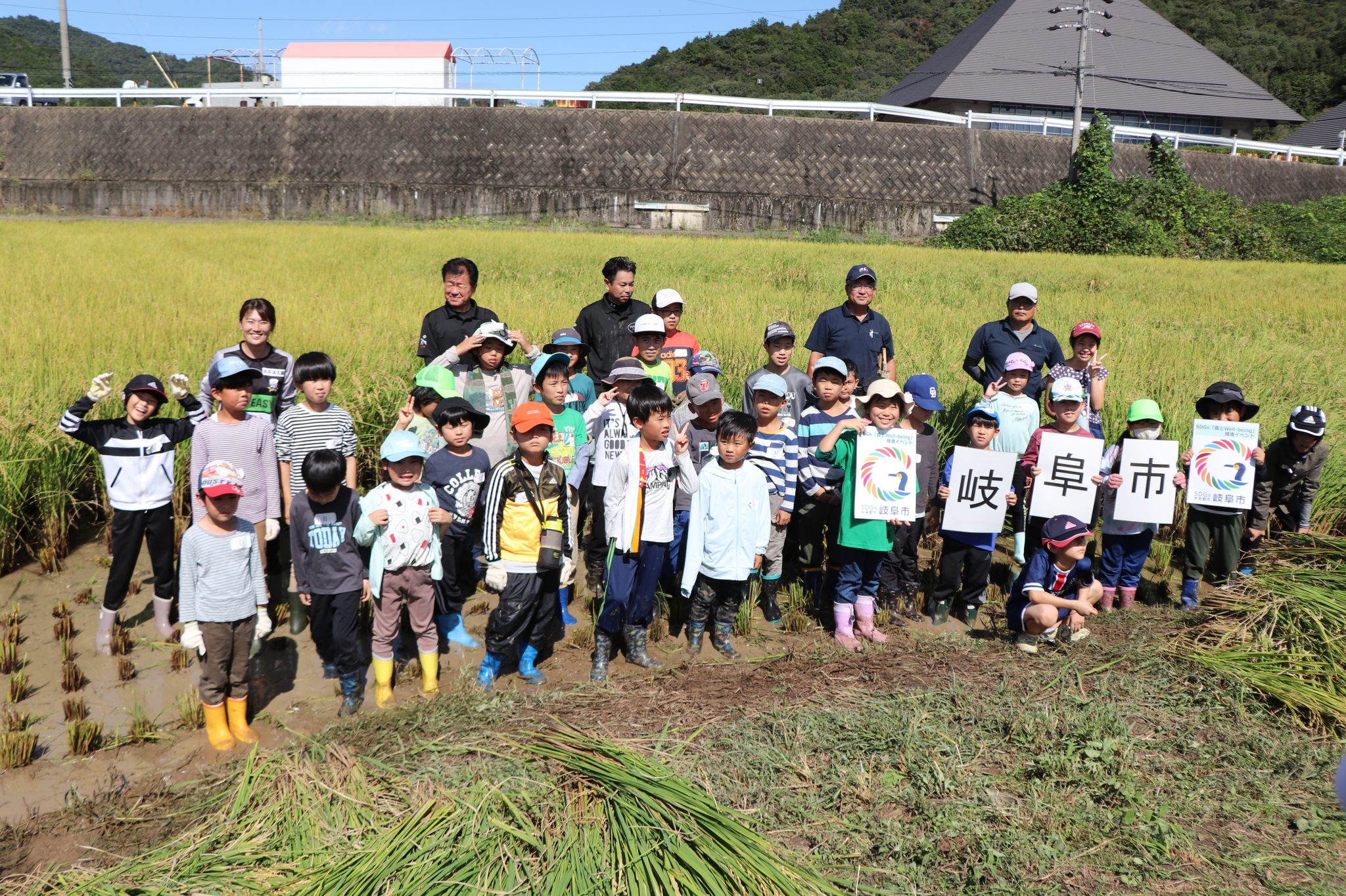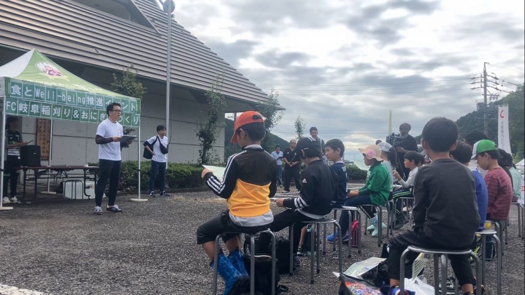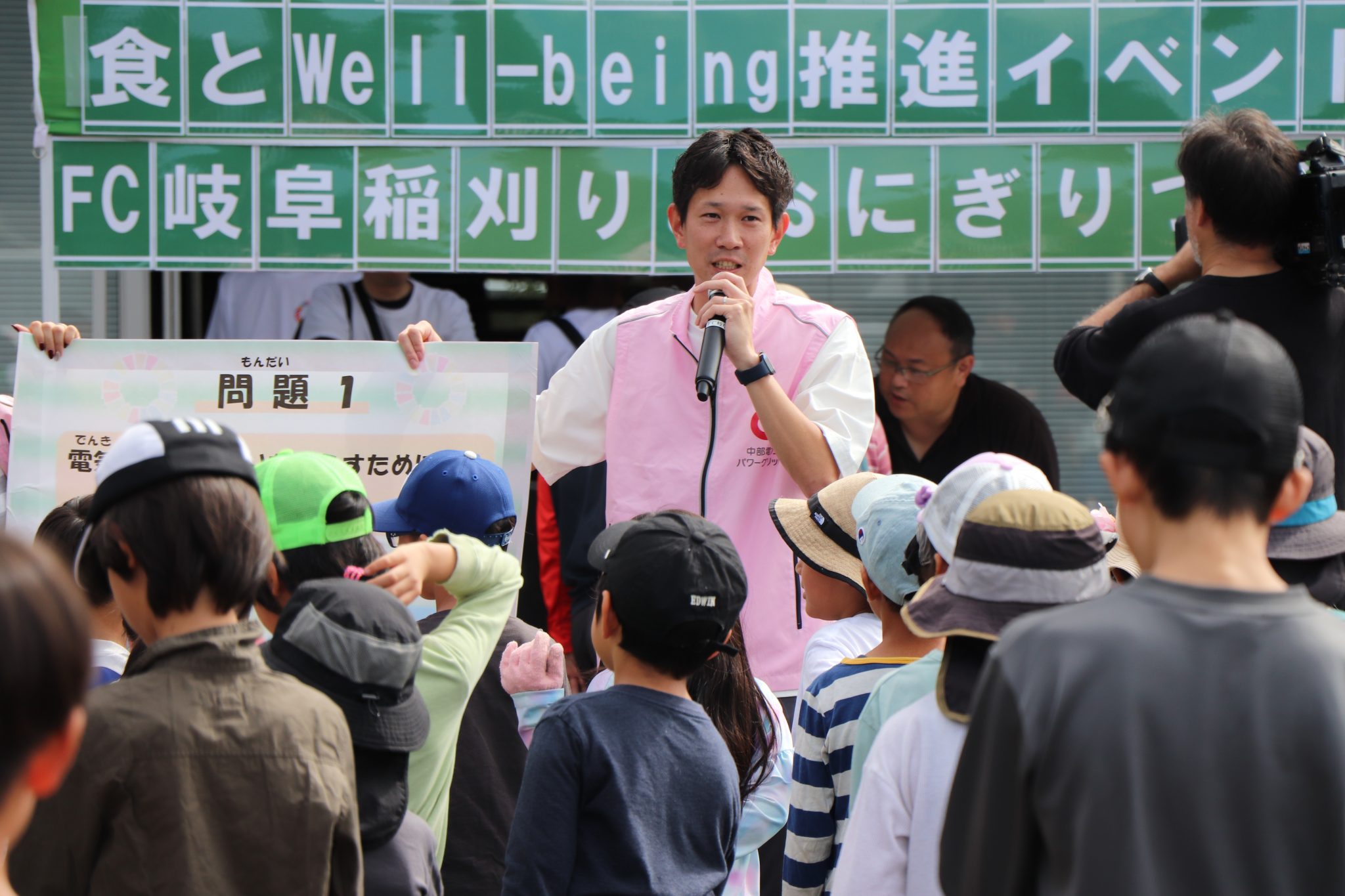 10月5日(土)に岐阜市主催の「食とWell-being」推進イベントとして、岐阜市内の田んぼでFC岐阜「稲刈り体験&おにぎりづくり」を実施しました。