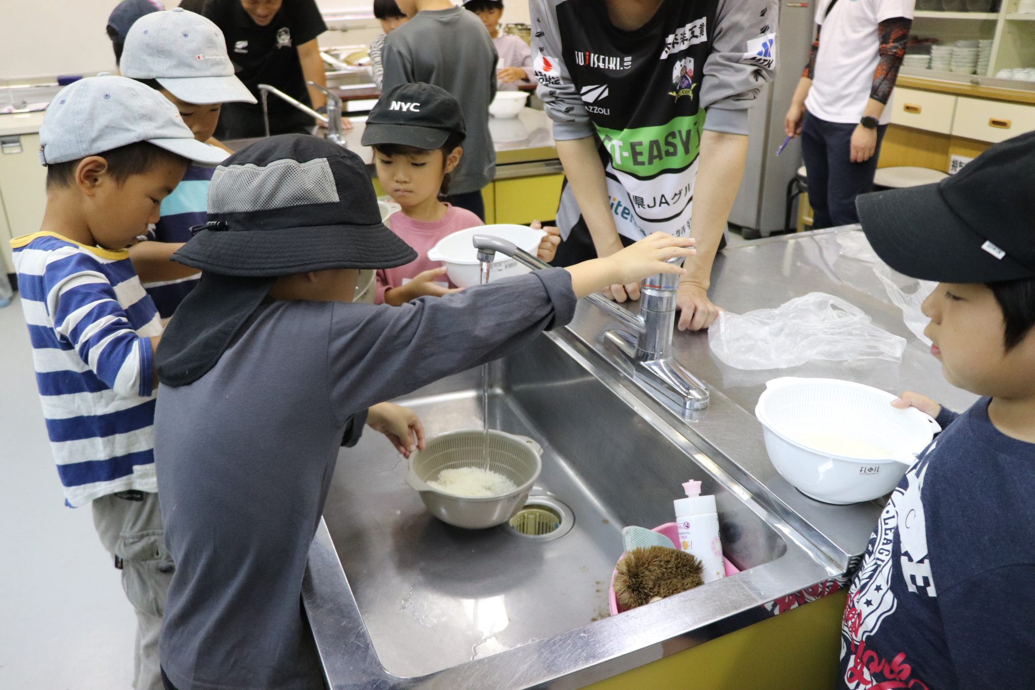 SDGs推進の一環として、5月に実施した「 田植え&どろんこサッカー」で植えた稲穂を刈り取る「稲刈り」を通じて、お米づくりを体験し農業の大切さを学んでもらうことを願って実施しました。
