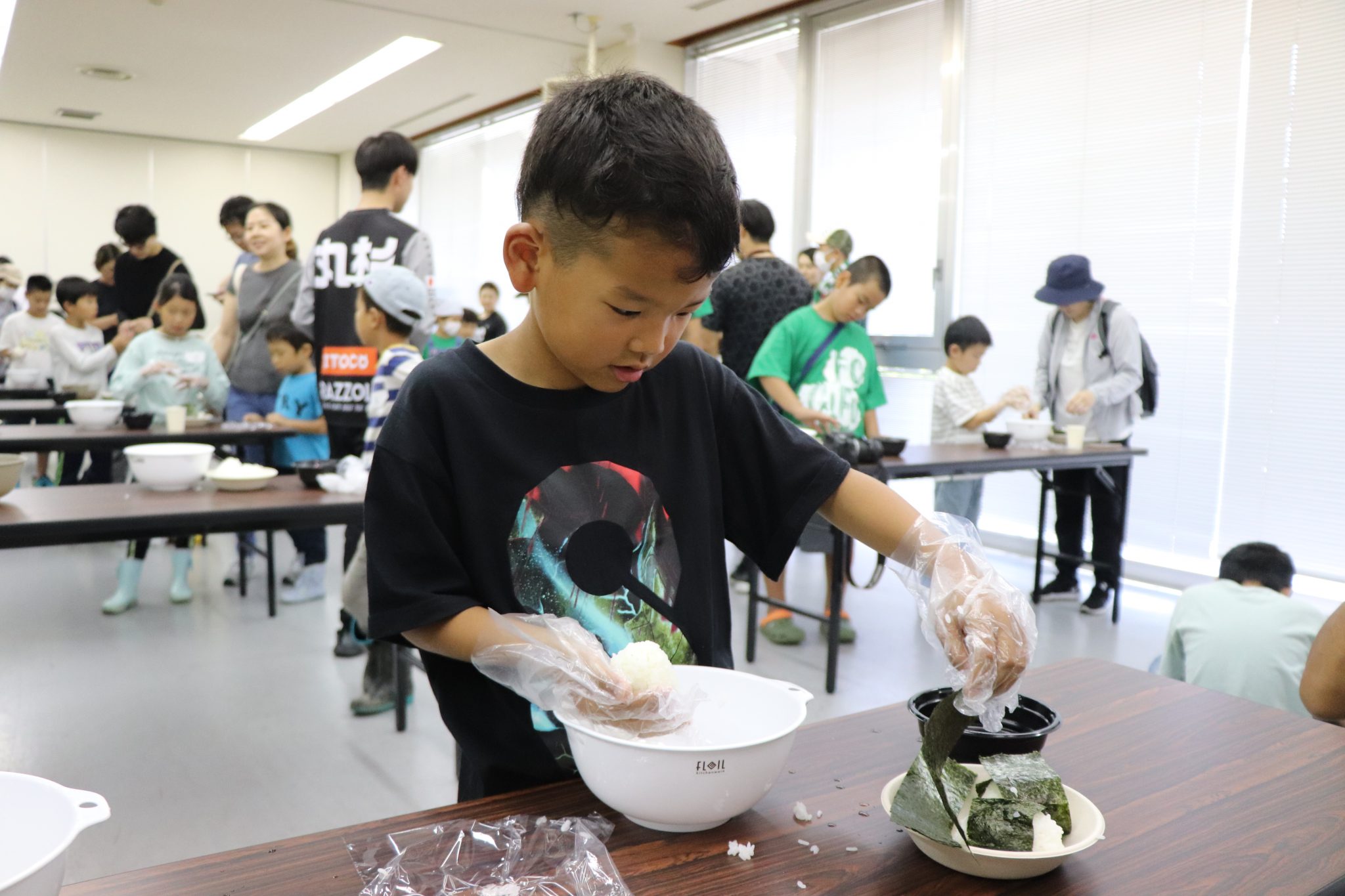 1時間ほどでご飯も炊きあがり「おにぎり」を作りました。感性豊かなおにぎりがたくさんできました。