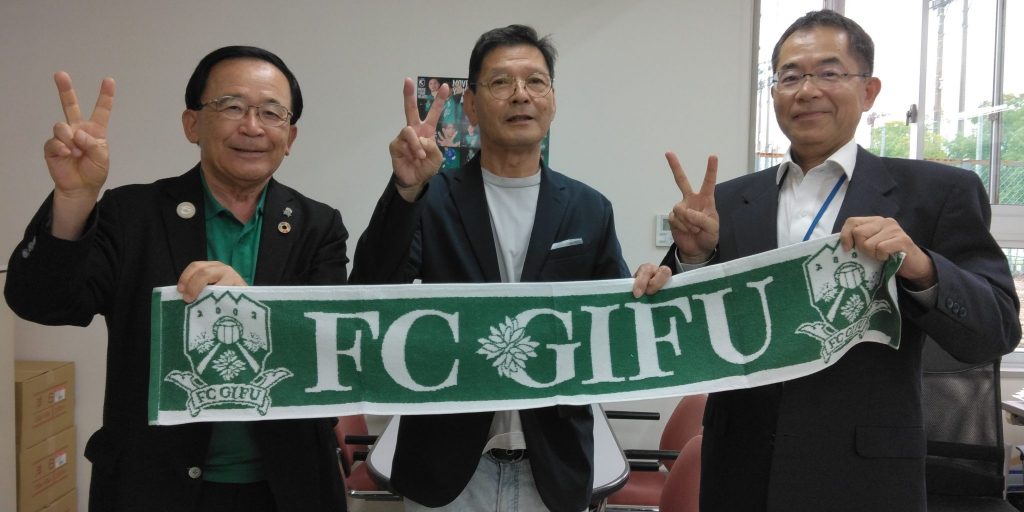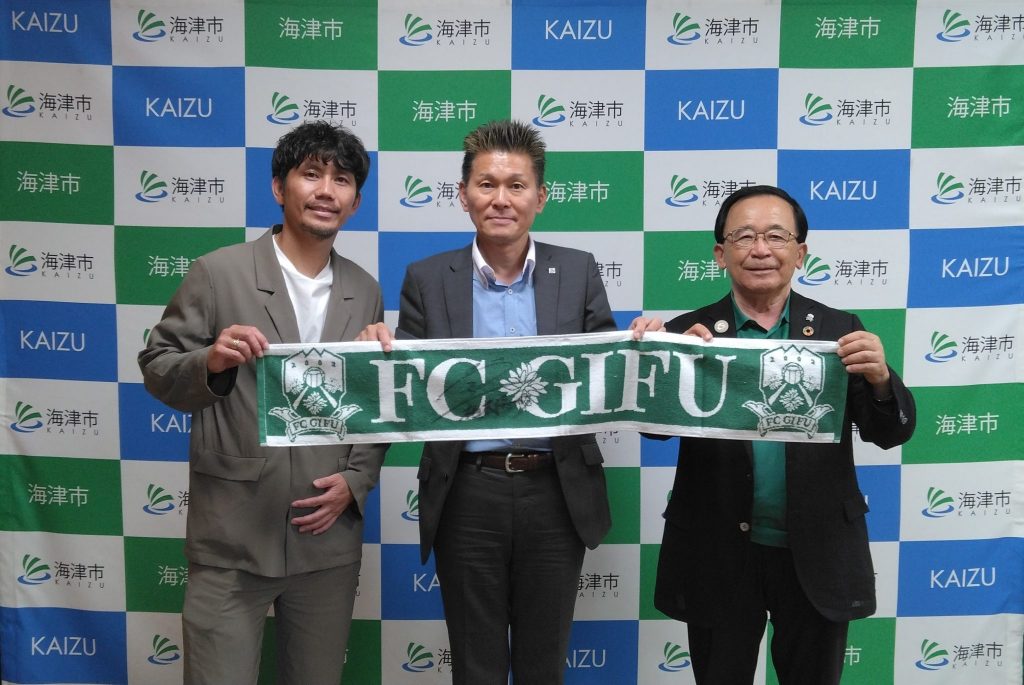 「海津市ホームタウンデー」開催にあたり、10月18日(金)に宮田 博之 会長と柏木 陽介 クラブアンバサダーが海津市役所を訪問し、大江 雅彦 海津市副市長へご挨拶させていただきました。