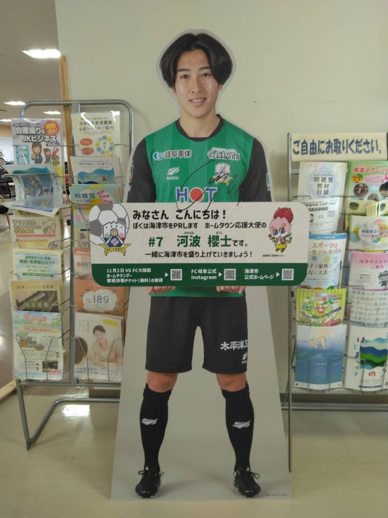 今シーズンは、河波 櫻士 選手がホームタウン応援大使として、海津市と相互に連携し、SNSでの情報配信や観光や地元グルメ・イベントなどの魅力をPRしていきます。