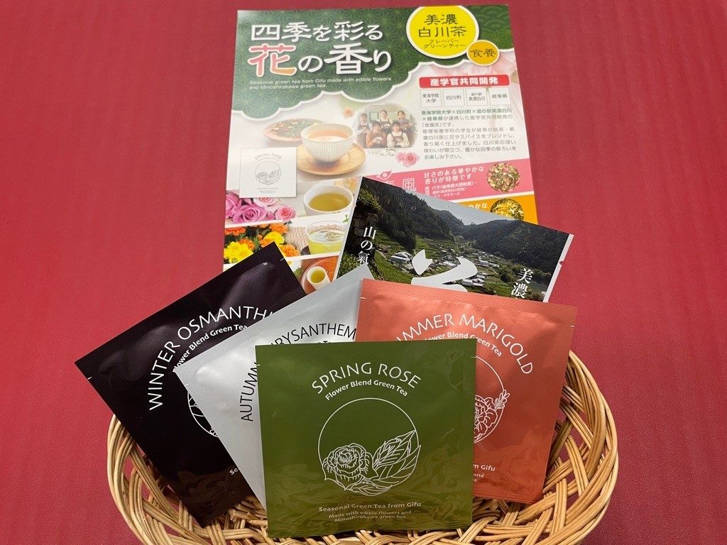 白川町ホームタウンデーでは、来場者プレゼントとして、東海学院大学(各務原市)管理栄養学科の学生たちが、白川町の美濃白川茶に四季それぞれの花を取り入れ、ハーブやスパイスをブレンドした「美濃白川茶フレーバーグリーンティー」、大野町の食用バラをブレンドした「岐阜花和紅茶」などをご提供していただきます。そして、白川町グルメ・観光PRブースにて、美濃白川"道の駅ピアチェーレ"のオリジナル手造りフランクフルト「白川フランク」などを販売していただきます。