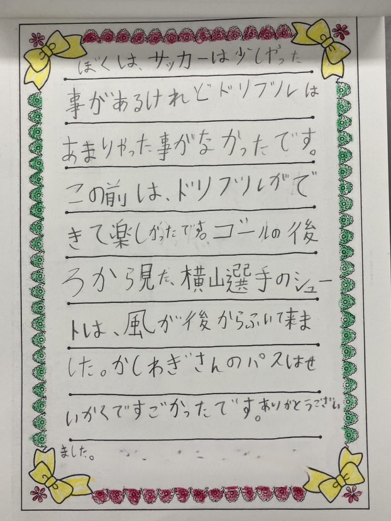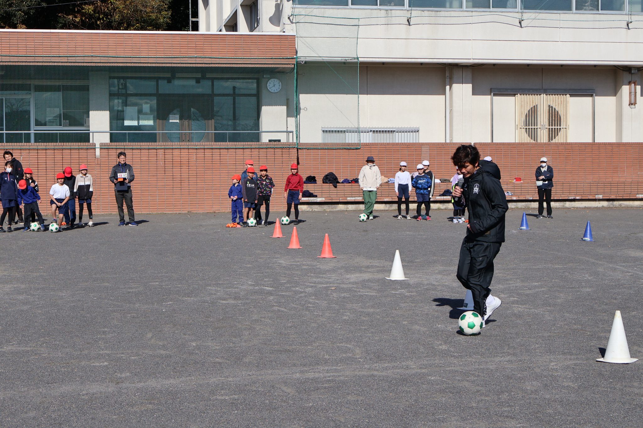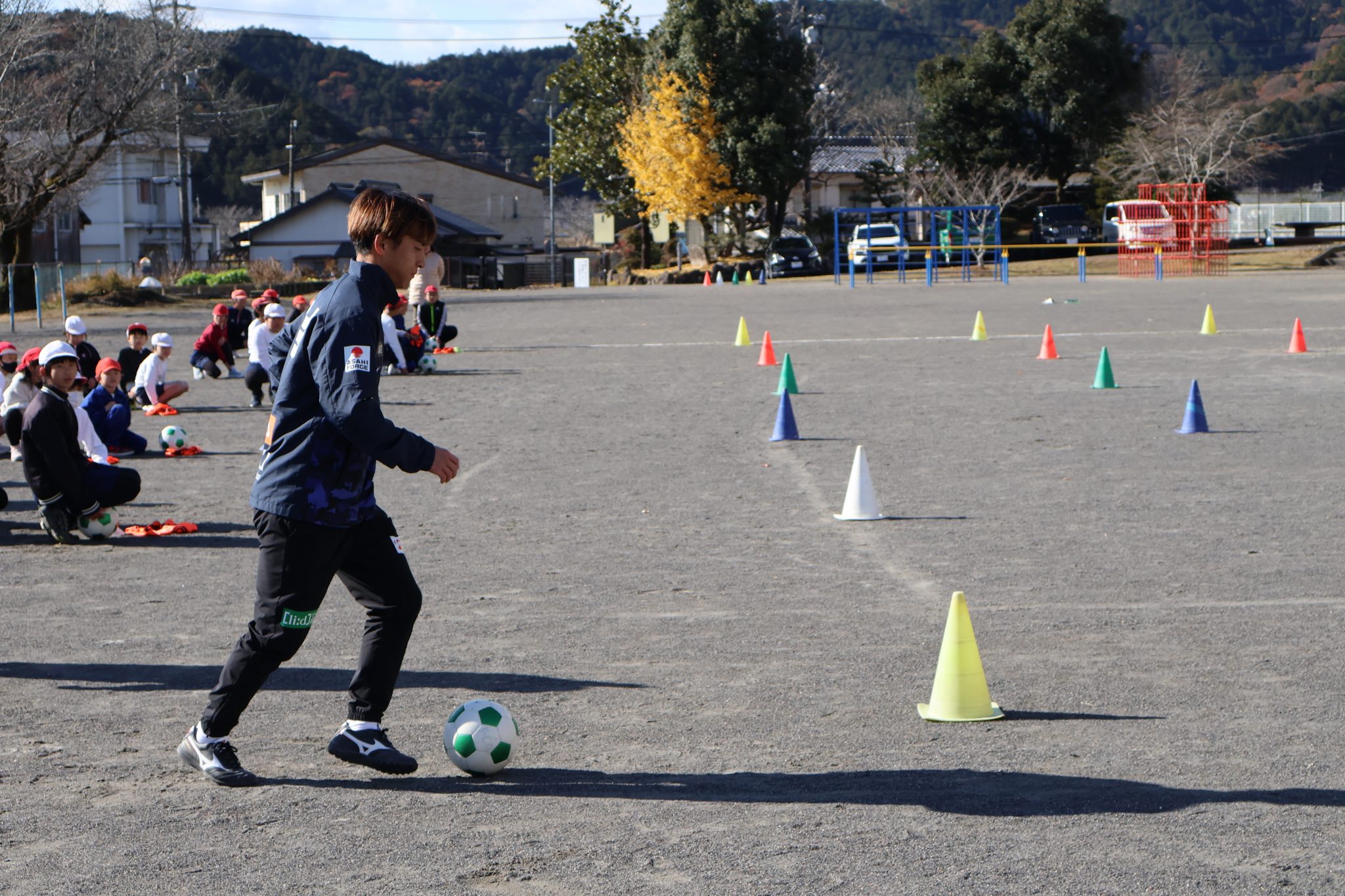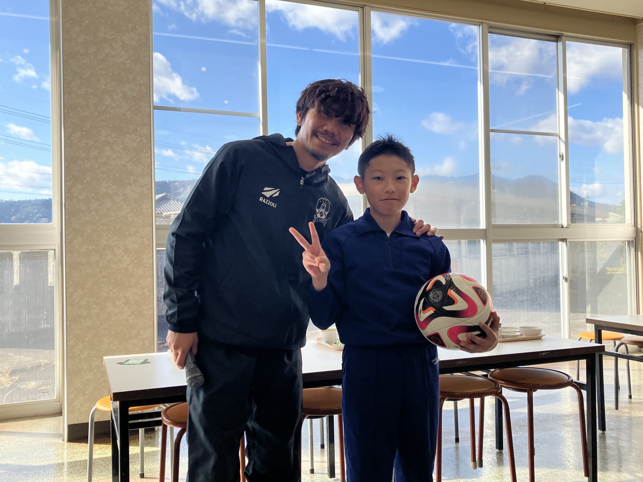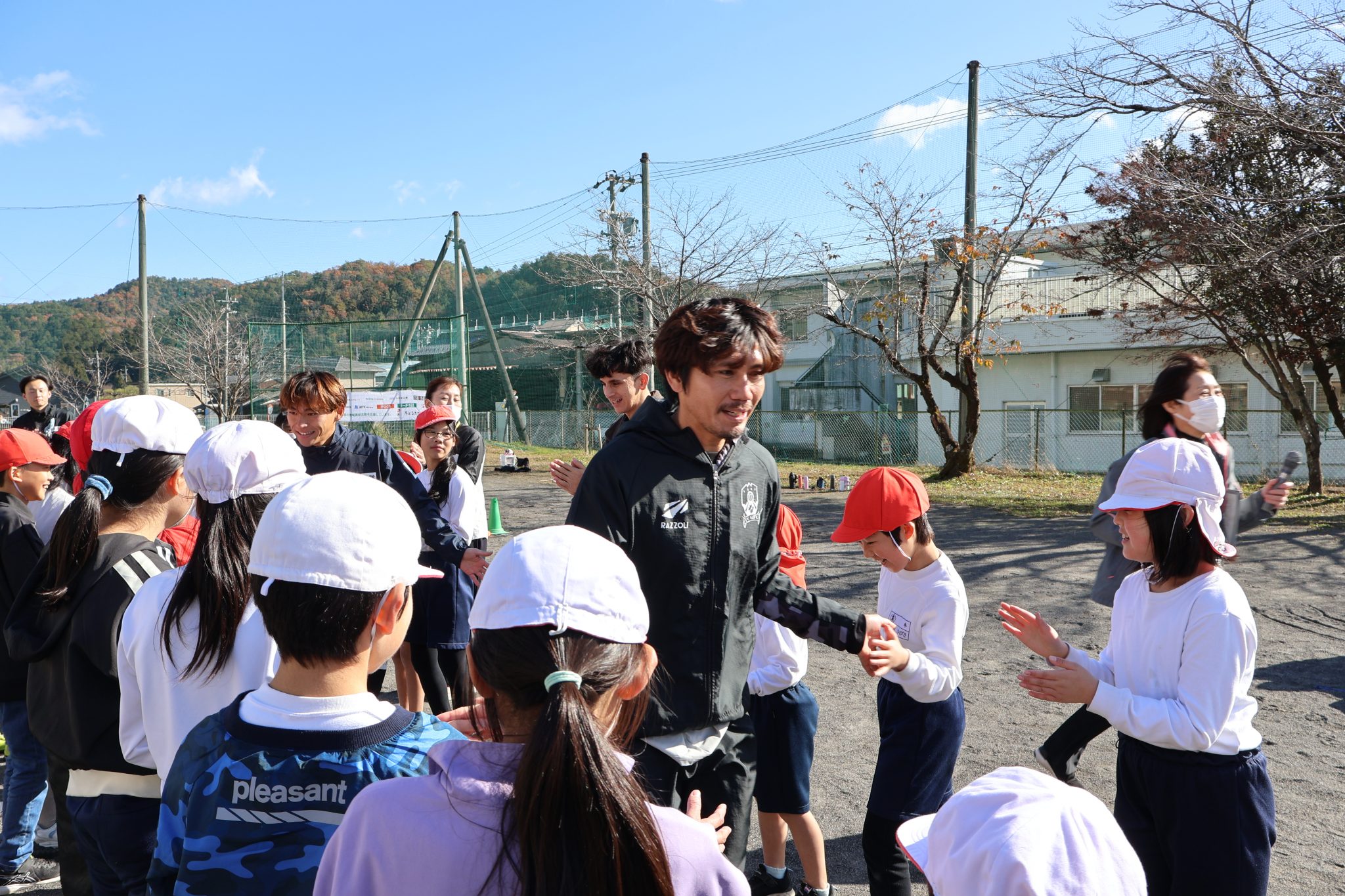トップチームの横山 智也 選手(山県市出身・山県市ホームタウン応援大使)、柏木陽介クラブアンバサダーが、両校小学1~6年生の子どもたち92名と交流しました。