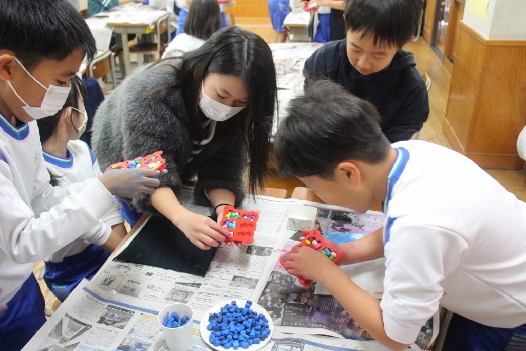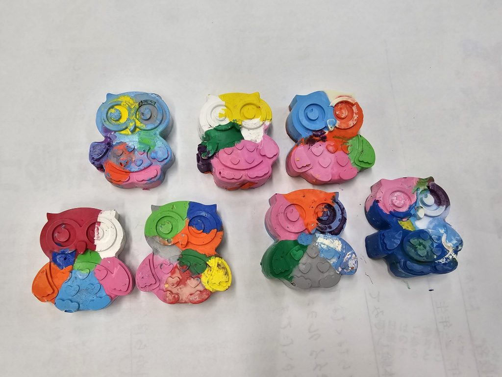 作ったマーブルクレヨンは来年度、長良西小学校に入学予定の新1年生にプレゼントさせていただきます。
