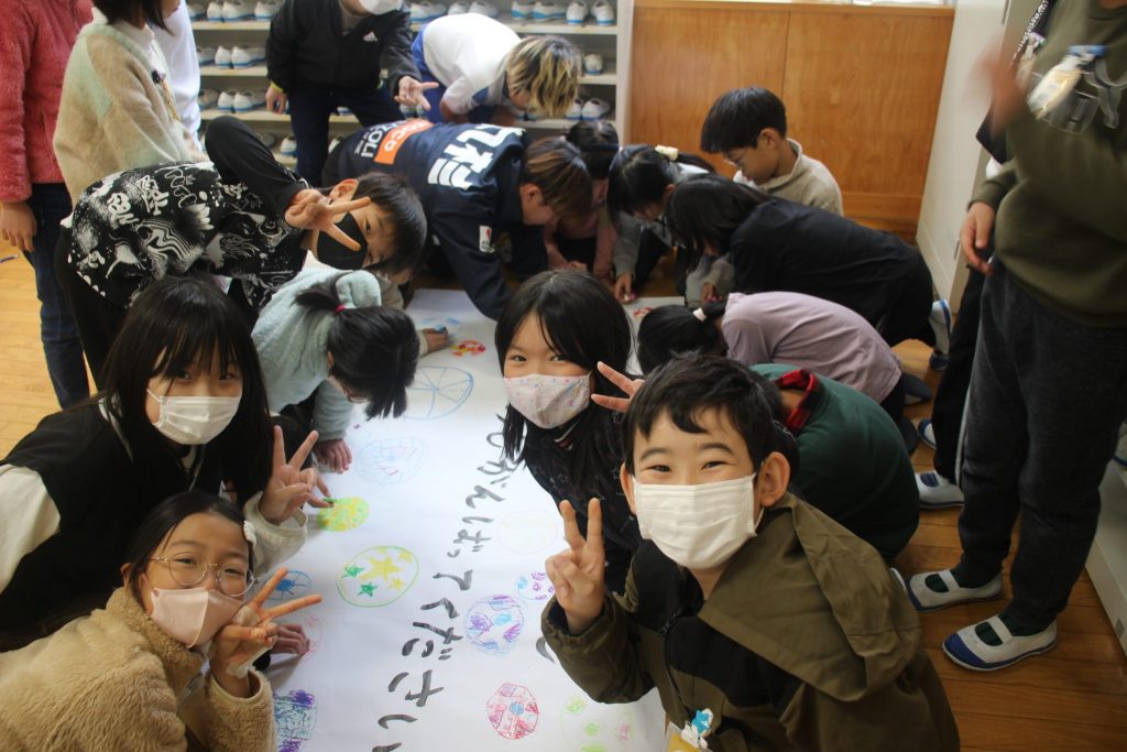 後半からの作業には選手も参加し、児童のみんなと完成したマーブルクレヨンで絵を描き交流を楽しみました!