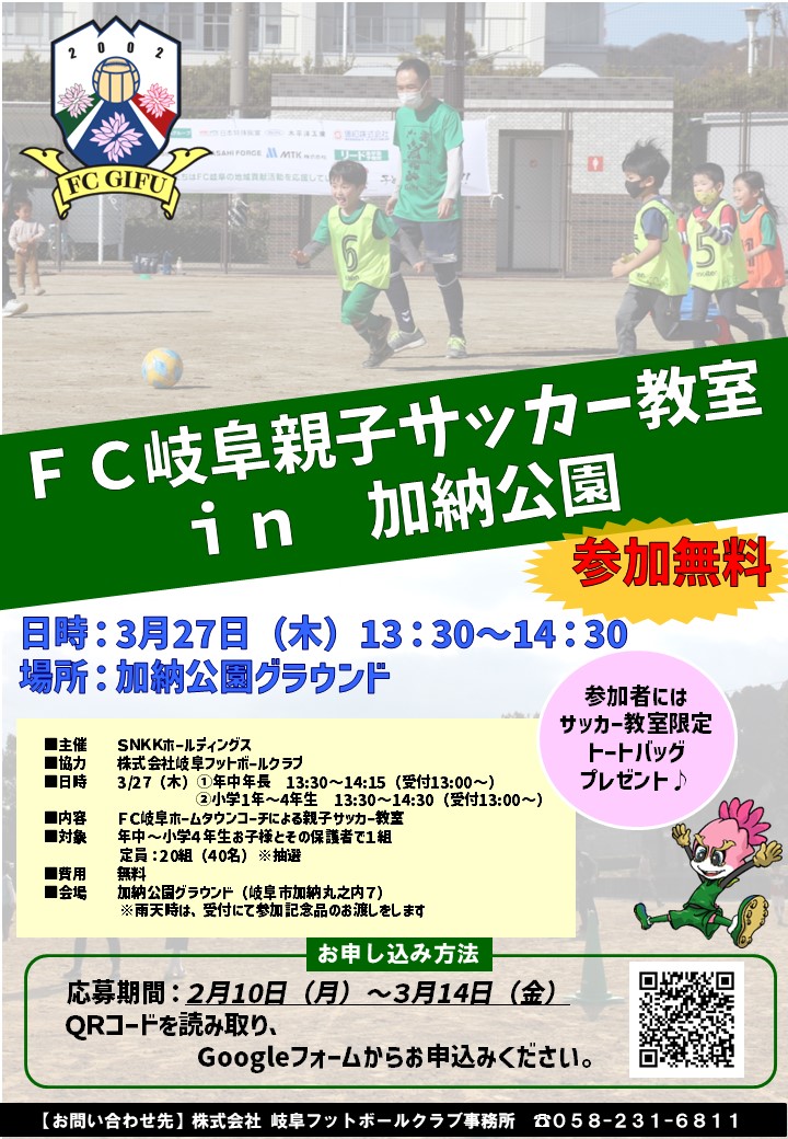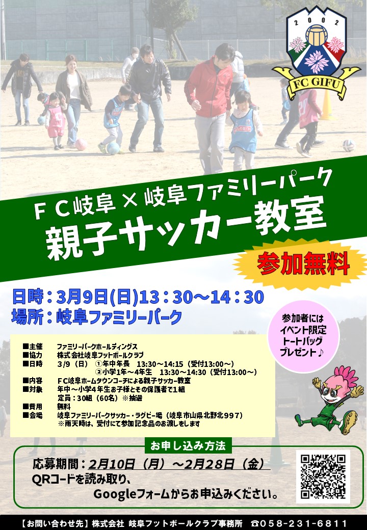 【追記2月7日(金)】FC岐阜 親子サッカー教室「in岐阜ファミリーパーク」「in加納公園」参加者募集〈抽選〉