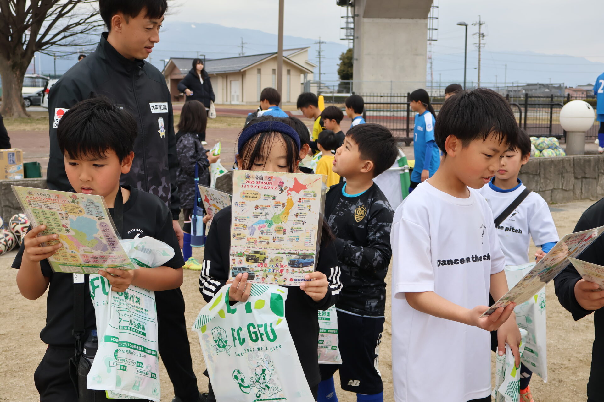 なかでもFC岐阜オフィシャルパートナーである岐阜スズキ販売株式会社様提供のFC岐阜オリジナル下敷きに子どもたちの目も釘付けになっていました。