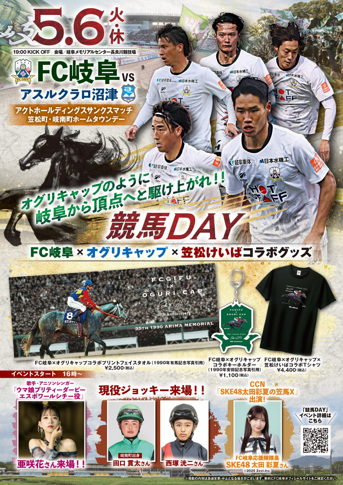 5月6日(火・休)の「笠松町・岐南町ホームタウンデー」では、選手がオグリキャップをモチーフにした