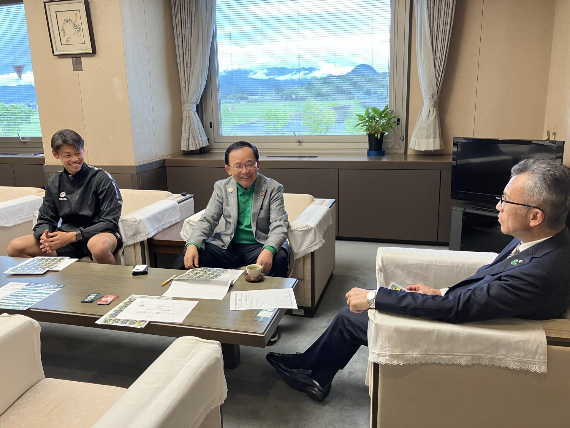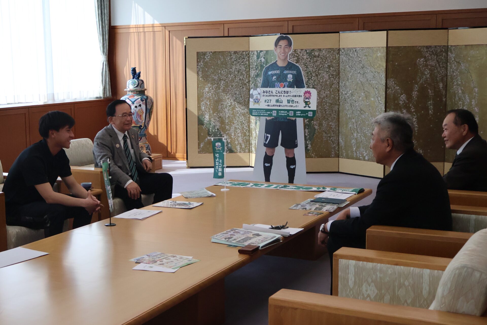4月16日(水)に横山智也選手が山県市役所を表敬訪問し、林宏優 山県市長にご挨拶