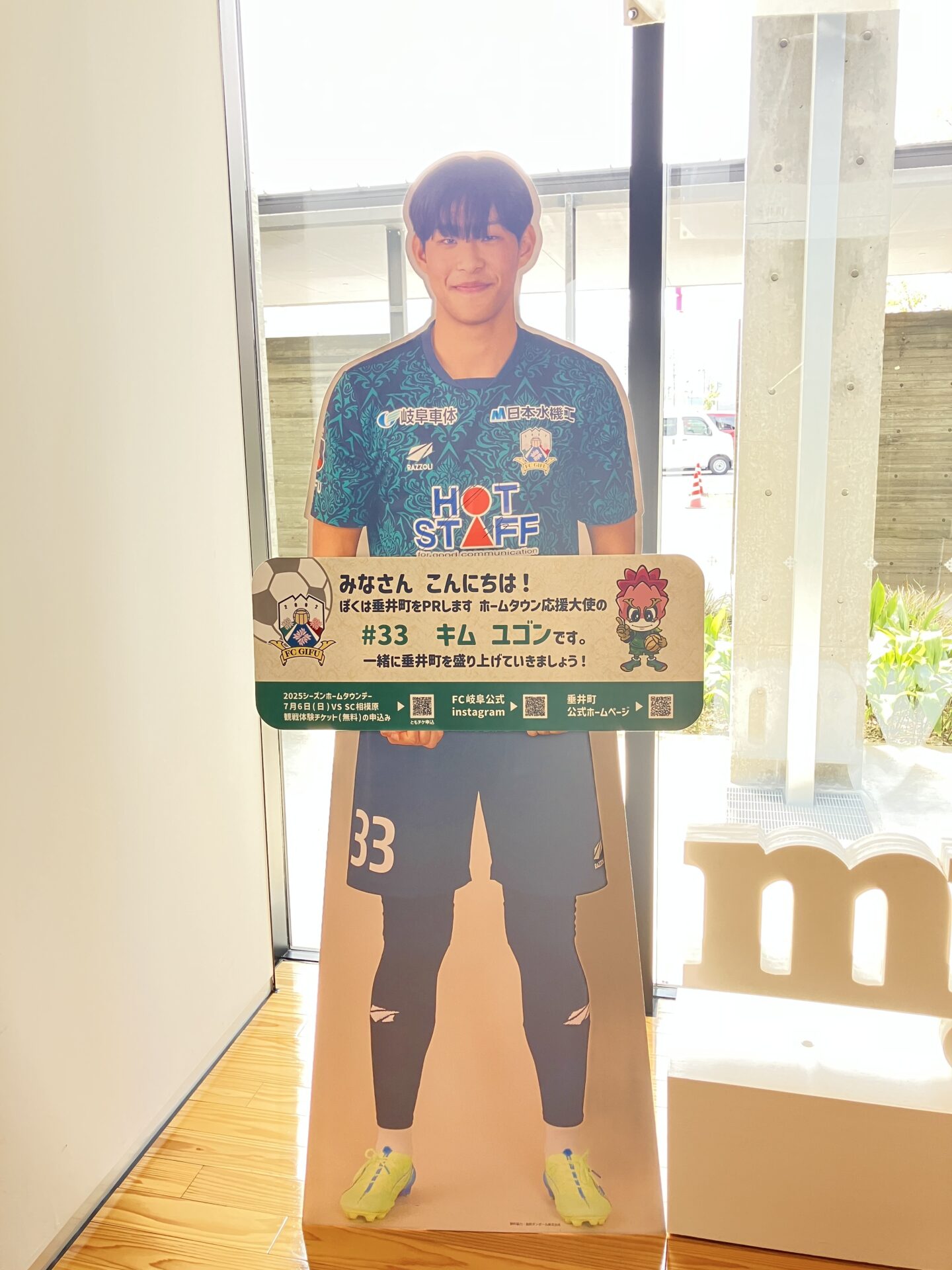 垂井町ホームタウン応援大使 キムユゴン選手 (DF ニックネーム:ユゴン) の応援パネルを垂井町役場に設置しています。