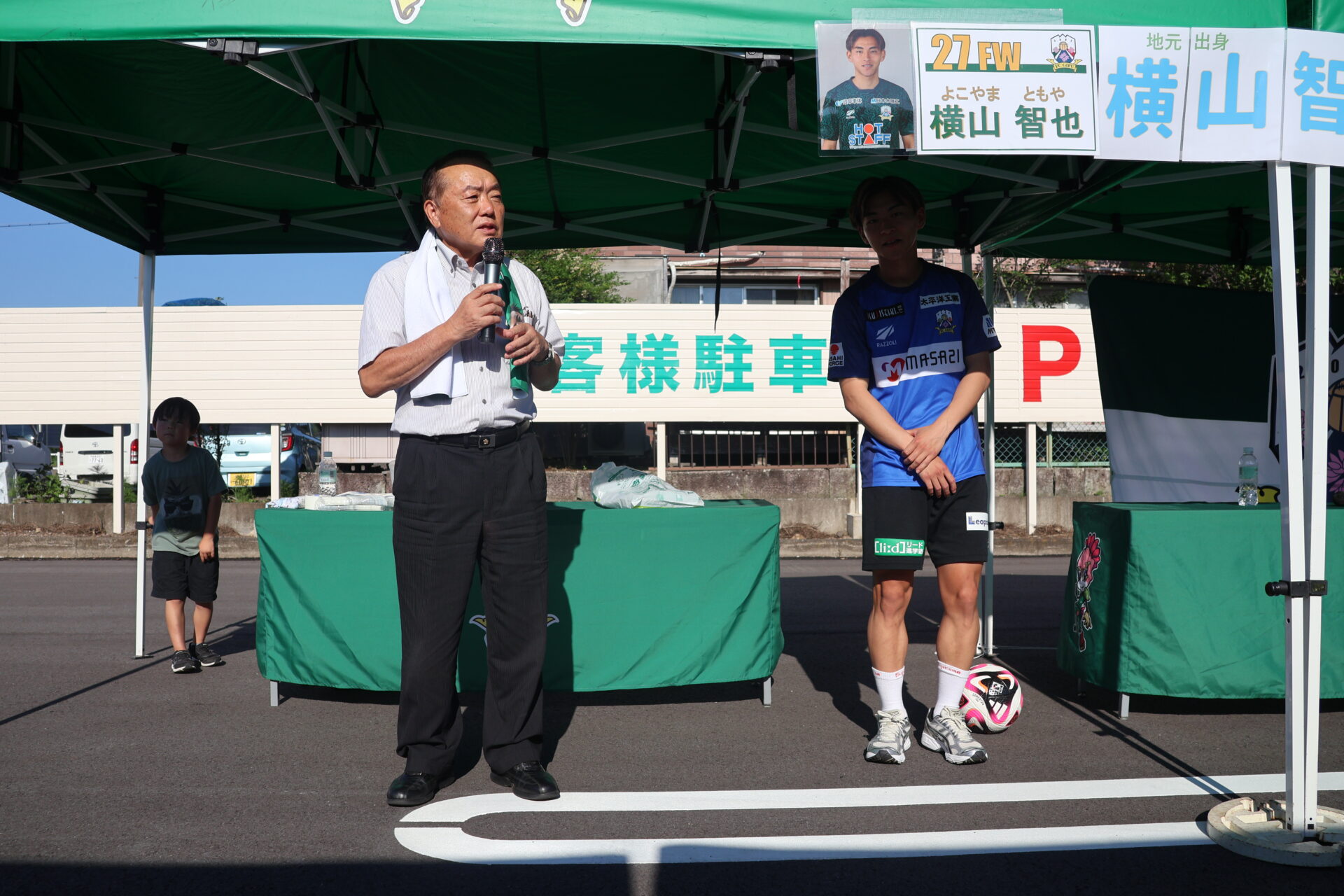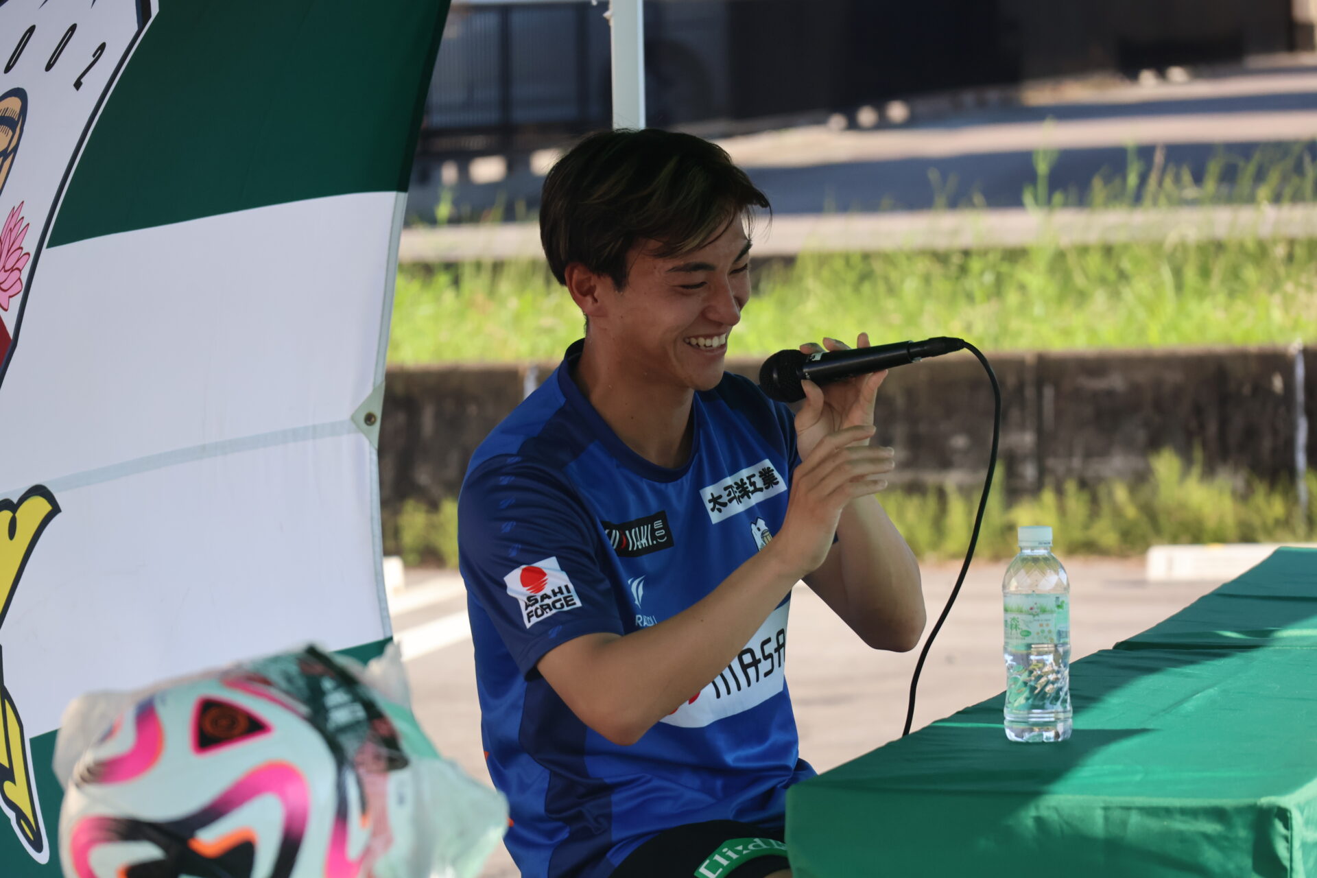 6月17日(火)山県市出身のJリーガー横山智也選手の存在をたくさんの人に知って頂き、身近な存在に感じスタジアムに足を運んでいただく第一歩へ!!を目的として、横山選手の地元でもある山県市の平和堂高富店でトークショー&サイン会を行いました。当日は約200名の方に参加いただき大いに盛り上がりました。