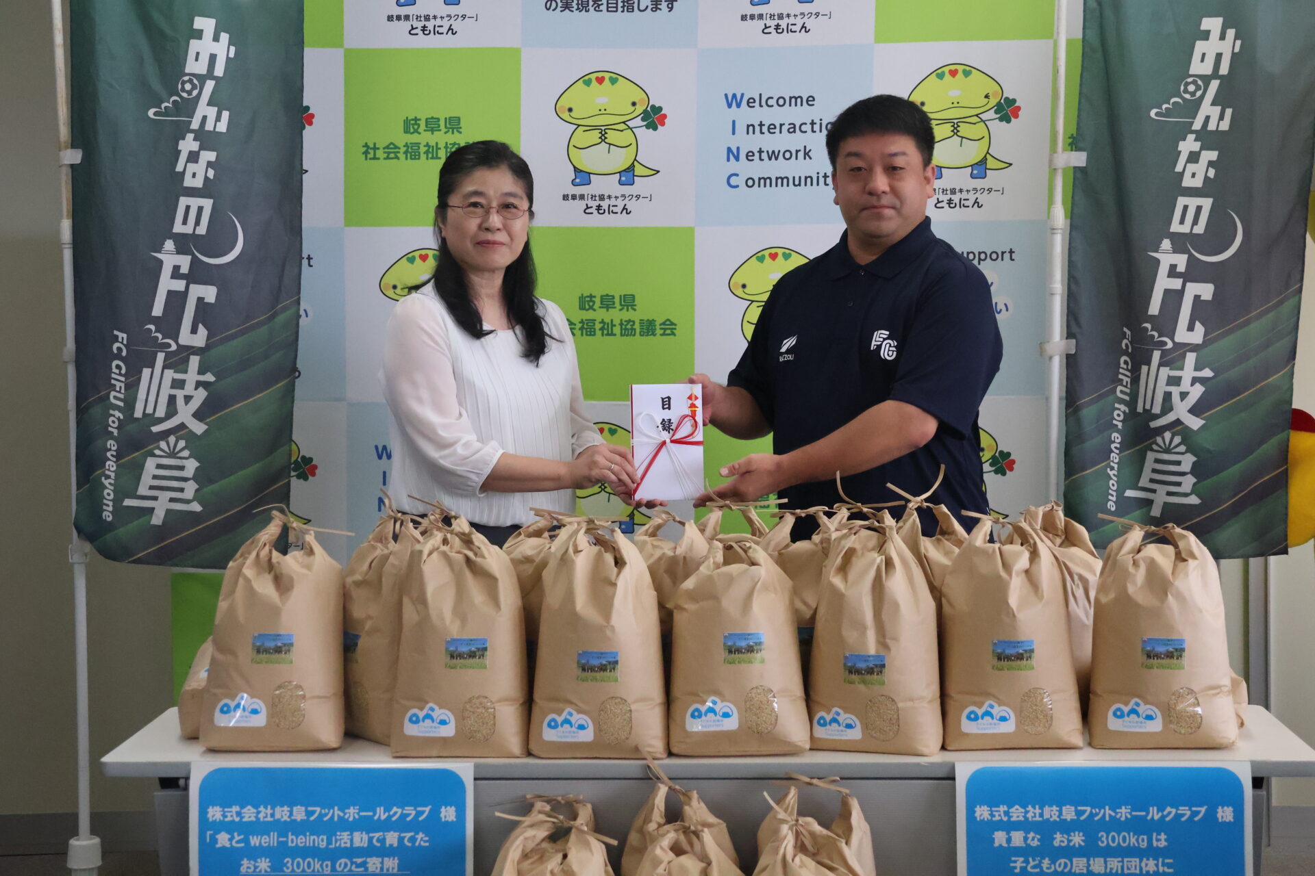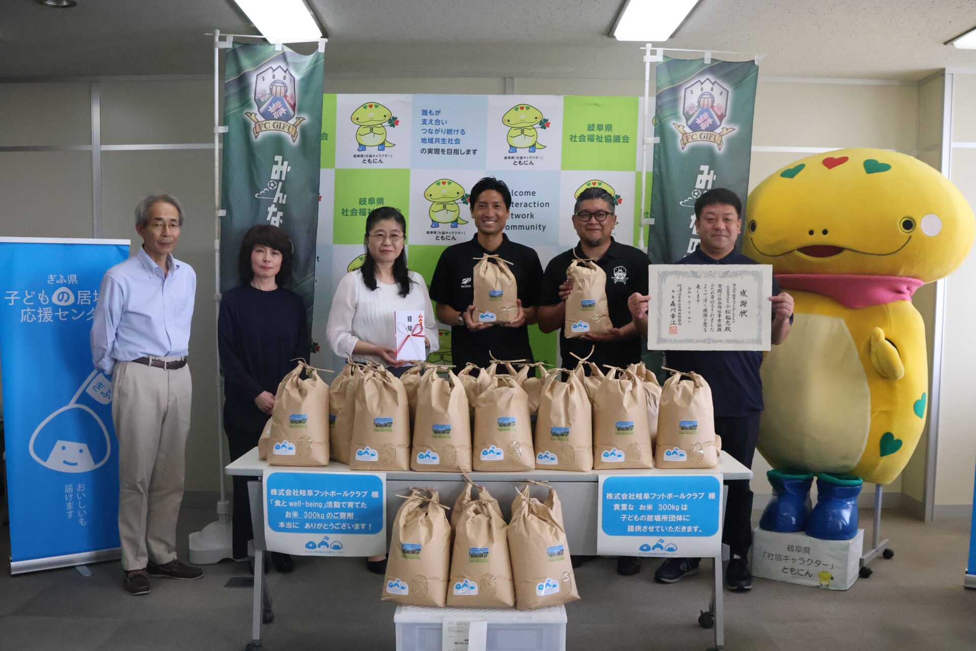 寄贈したお米300㎏は岐阜県社会福祉協議会様を通して、県内の「子どもの居場所」を運営する60施設へ振り分けられます。
