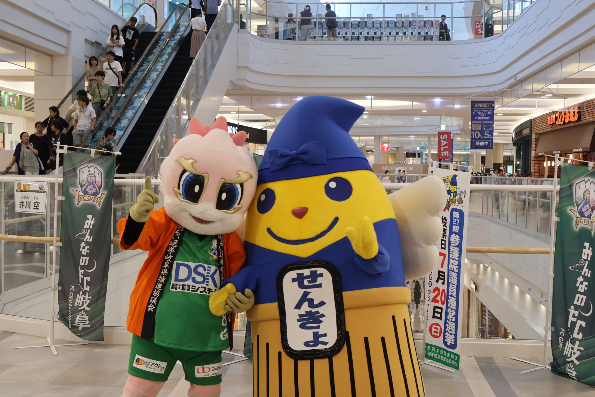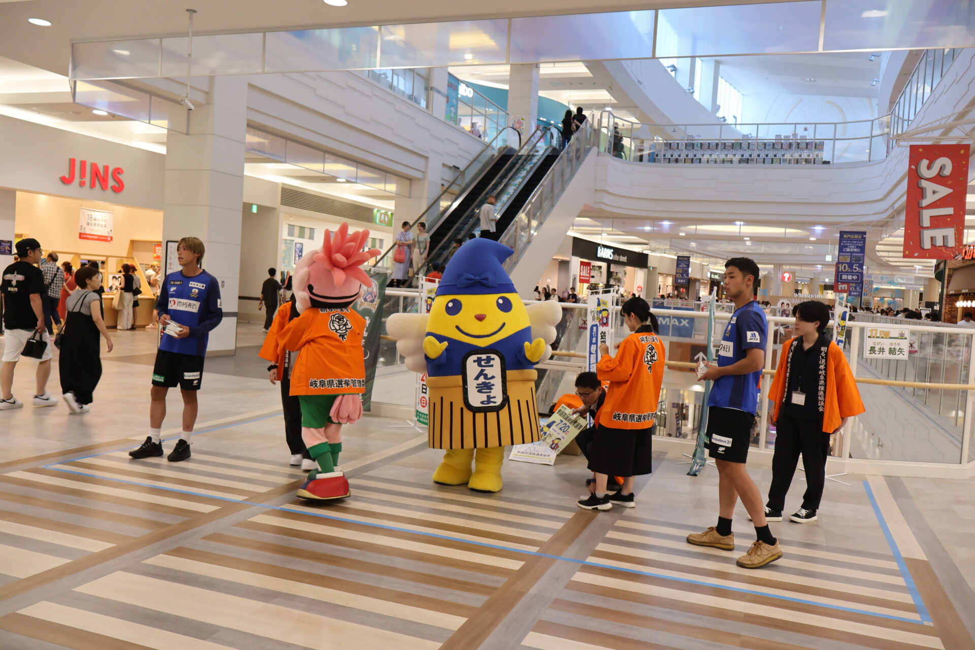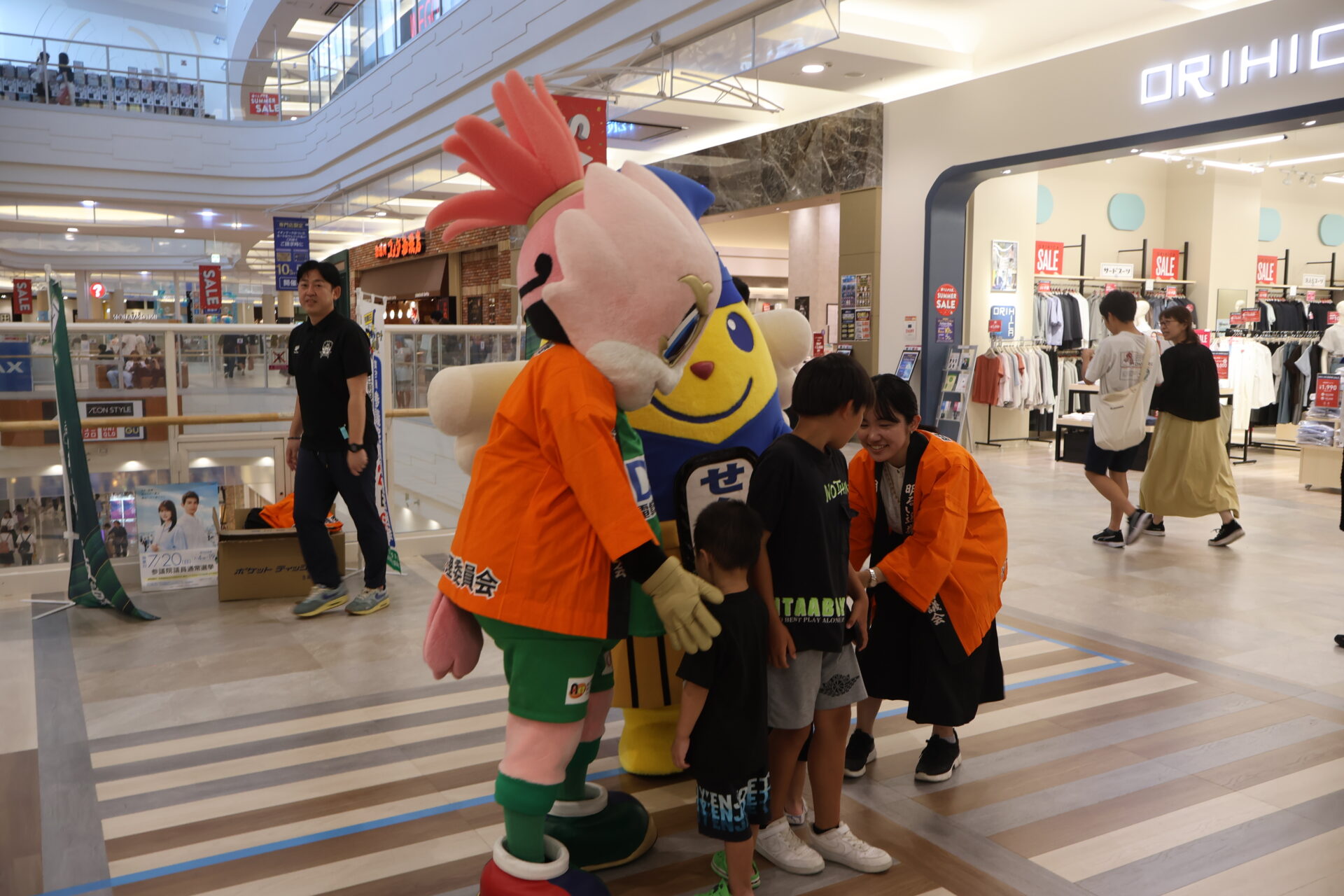 7月13日(日)に各務原市の「イオンモール各務原インター」にて行われた参議院選挙の該当啓発に連携してFC岐阜の井川空選手、長井結矢選手とギッフィーが啓発活動を行いました。