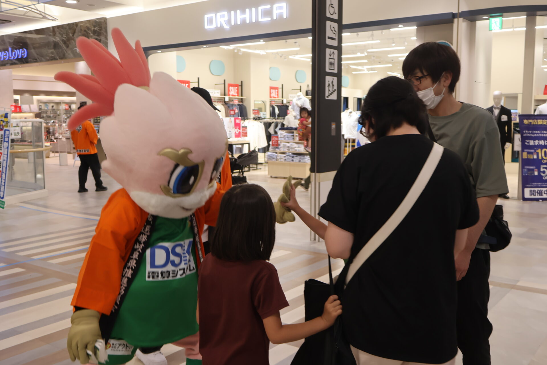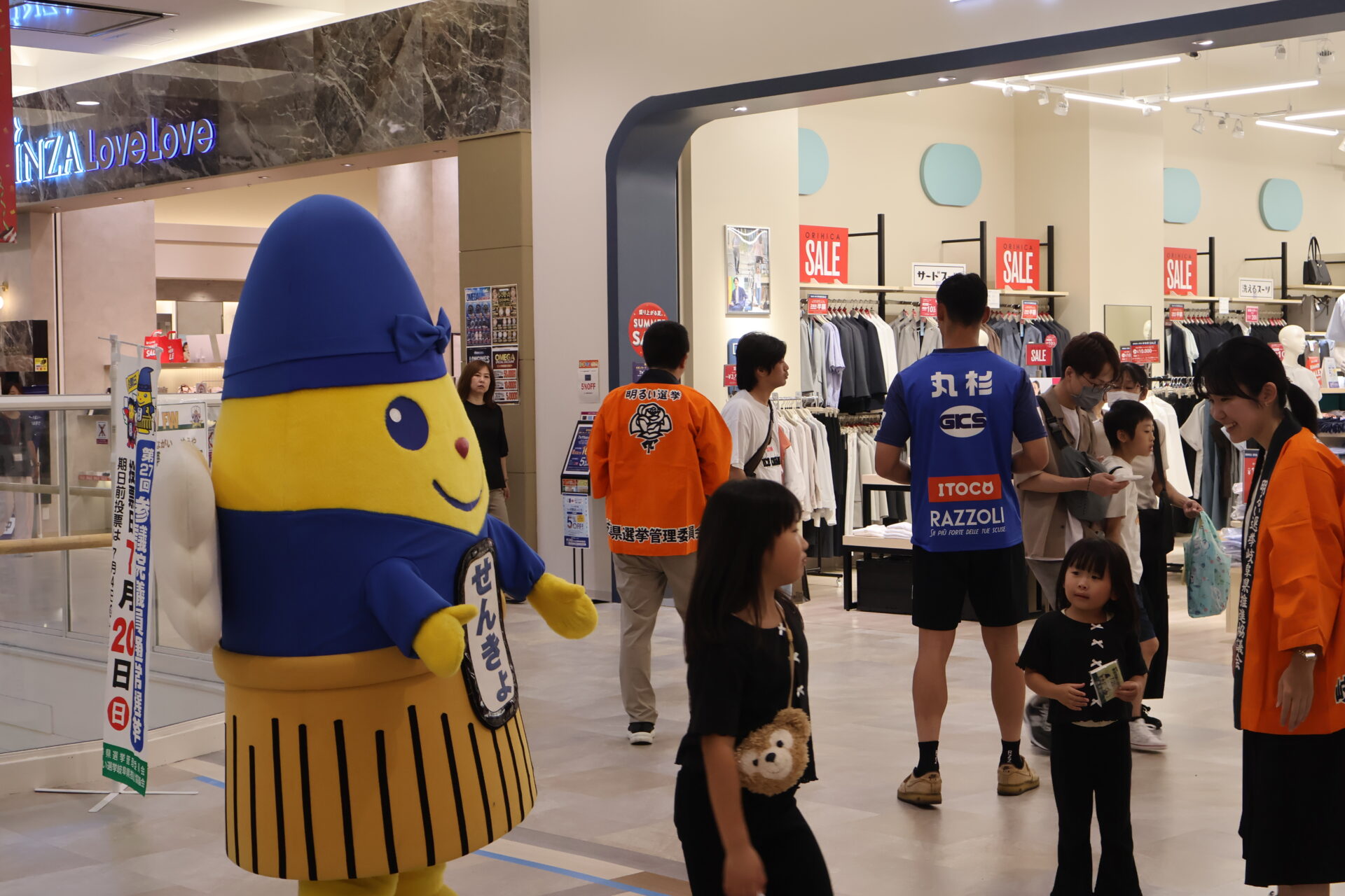 選挙のイメージキャラクターのめいすいくんや県の選挙管理委員会の方々も参加し、啓発活動を行いました。