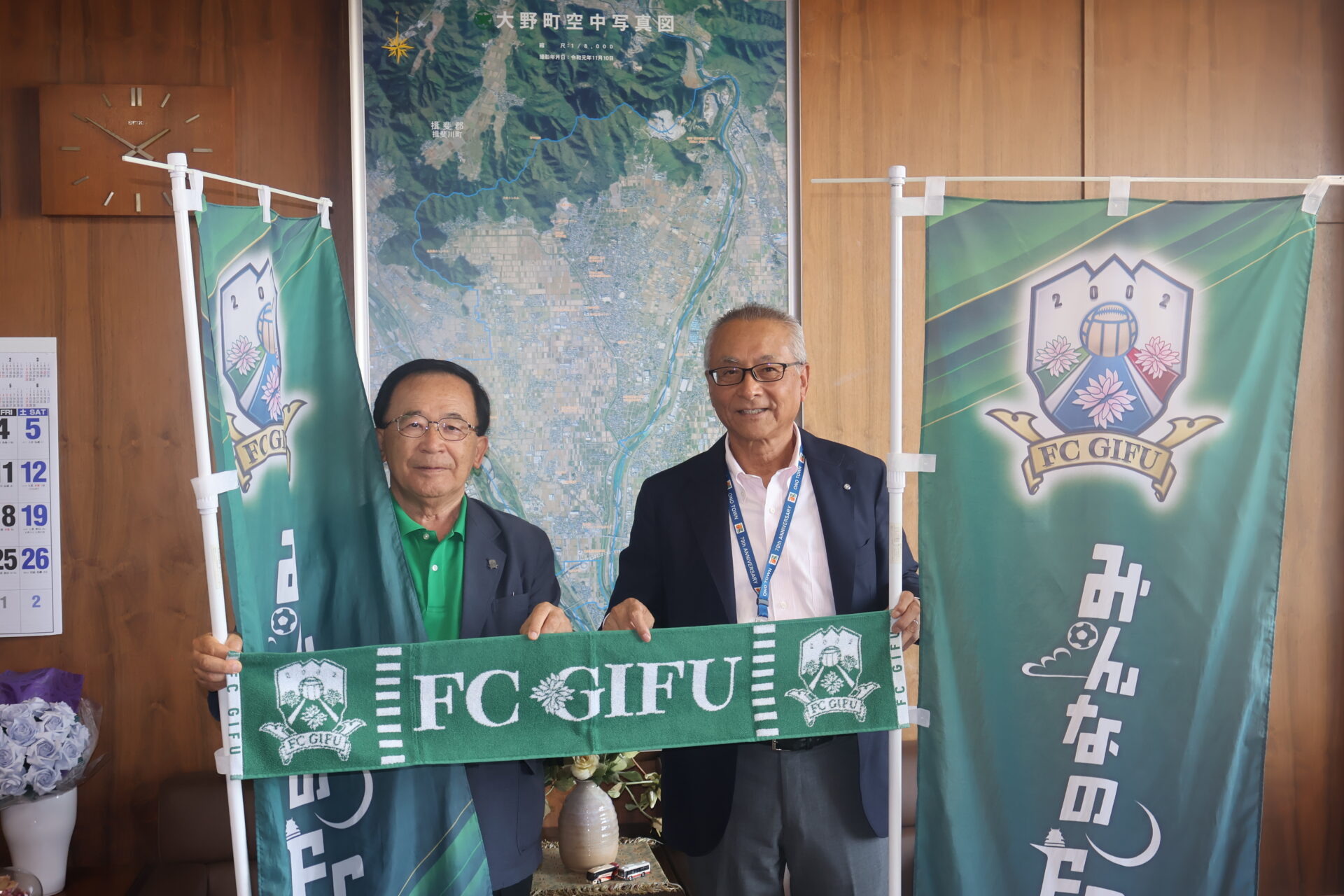 9月20日(土)AC長野パルセイロ戦での「大野町ホームタウンデー」開催にあたり、7月28日(月)に宮田博之会長が大野町役場を訪問し、宇佐美晃三大野町長を表敬訪問しました。