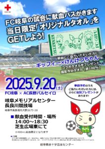 9月20日(土)AC長野パルセイロ戦において、スタジアム献血を実施いたします。
