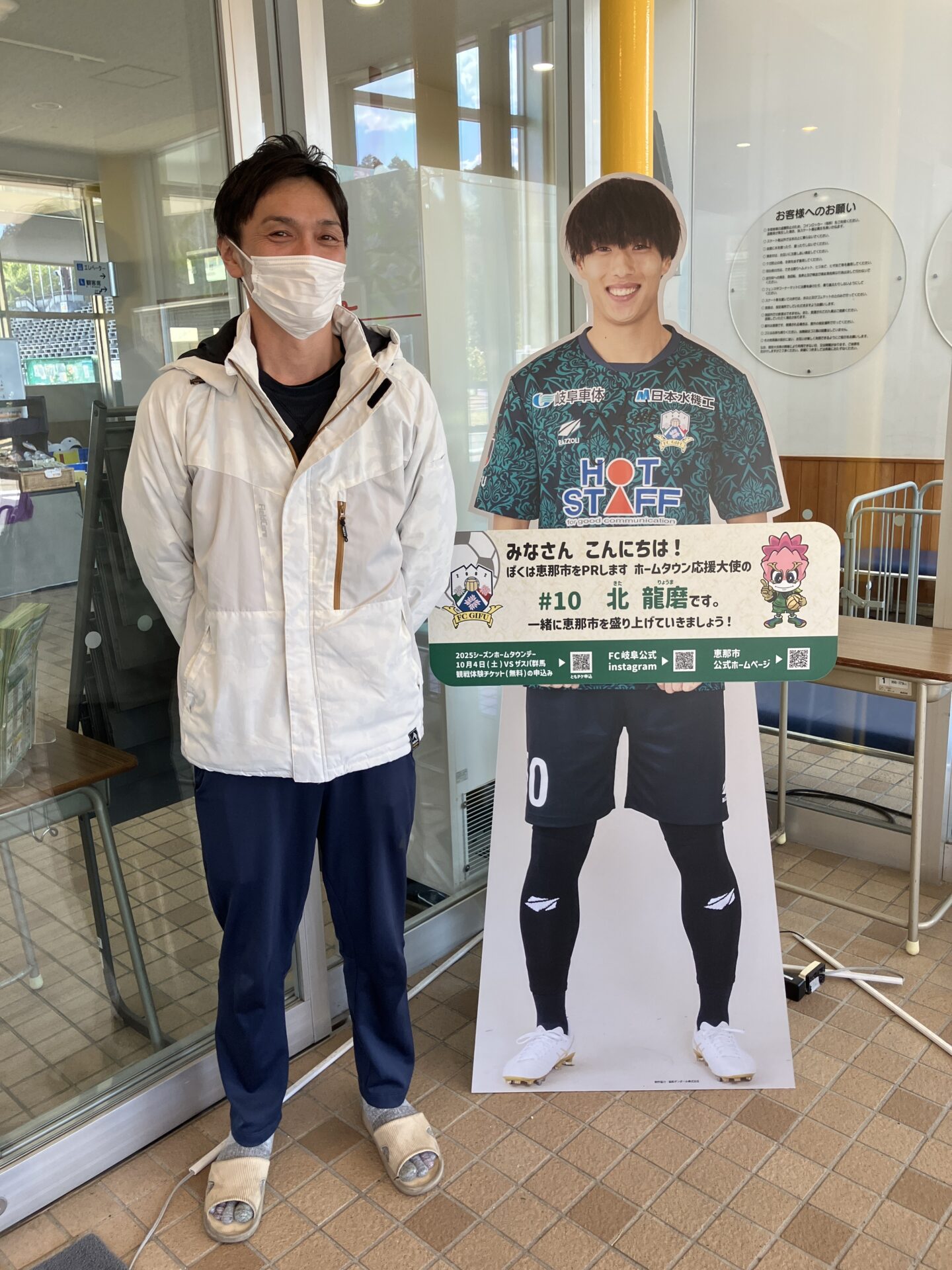 恵那市ホームタウン応援大使の 北龍磨選手 (MF ニックネーム:りょうま) の応援パネルをクリスタルパーク恵那に設置しています。