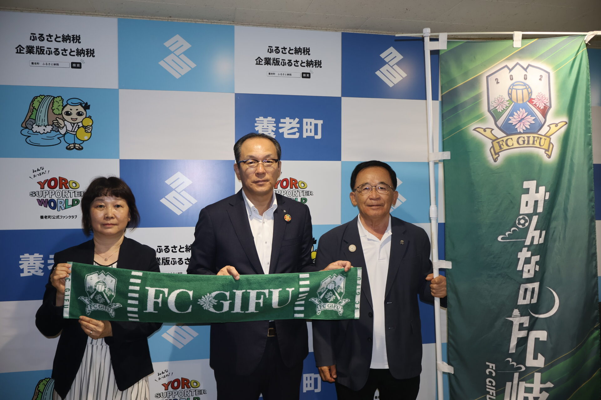9月20日(土) AC長野パルセイロ戦での「養老町ホームタウンデー」開催にあたり、8月26日(火)に宮田博之会長が養老町役場を訪問し、川地憲元養老町長と早崎教育長を表敬訪問しました。