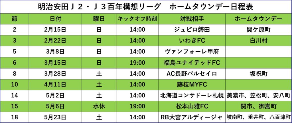 明治安田J2・J3百年構想リーグのFC岐阜ホームタウンデー開催日が決定しましたので、お知らせします。(2・3月分については、1月21日に発表済み)