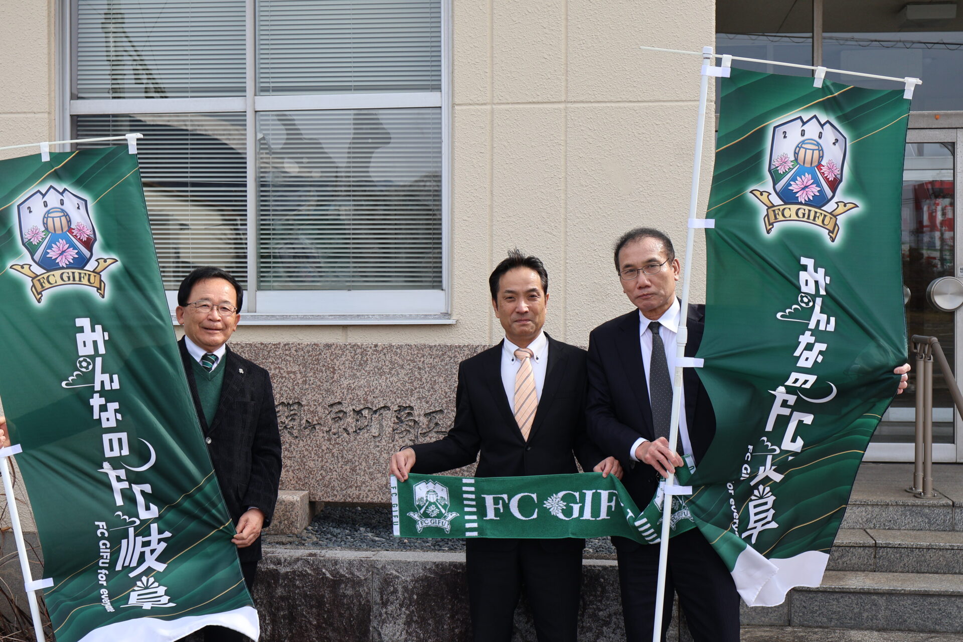 訪問では、日頃よりFC岐阜への温かいご支援・ご声援に対する御礼をお伝えするとともに、今後も関ケ原町の皆さまに応援を頂きたいとのお願いをいたしました。