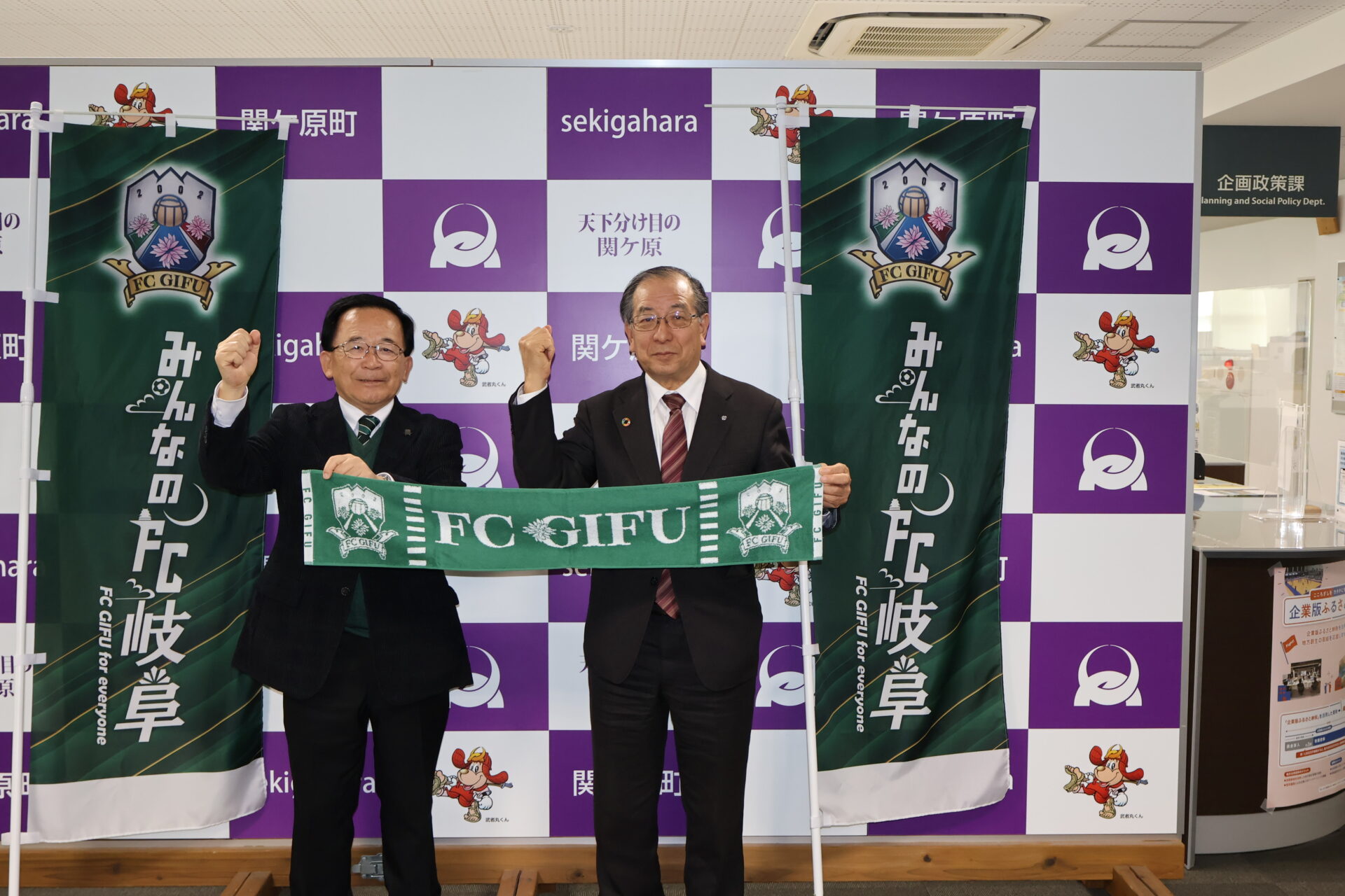 明治安田J2・J3百年構想リーグホーム開幕戦第2節の2月15日(日)ジュビロ磐田戦での「関ケ原町ホームタウンデー」開催にあたり、2月5日(木)に宮田 博之会長が関ケ原町を訪問し、西脇 康世関ケ原町長を表敬訪問しました。
