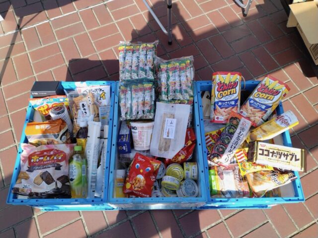 ・缶詰(肉/魚/野菜/果物)・レトルト食品・インスタント食品・乾物(パスタ等)・お米・お菓子 など保存できるもの
