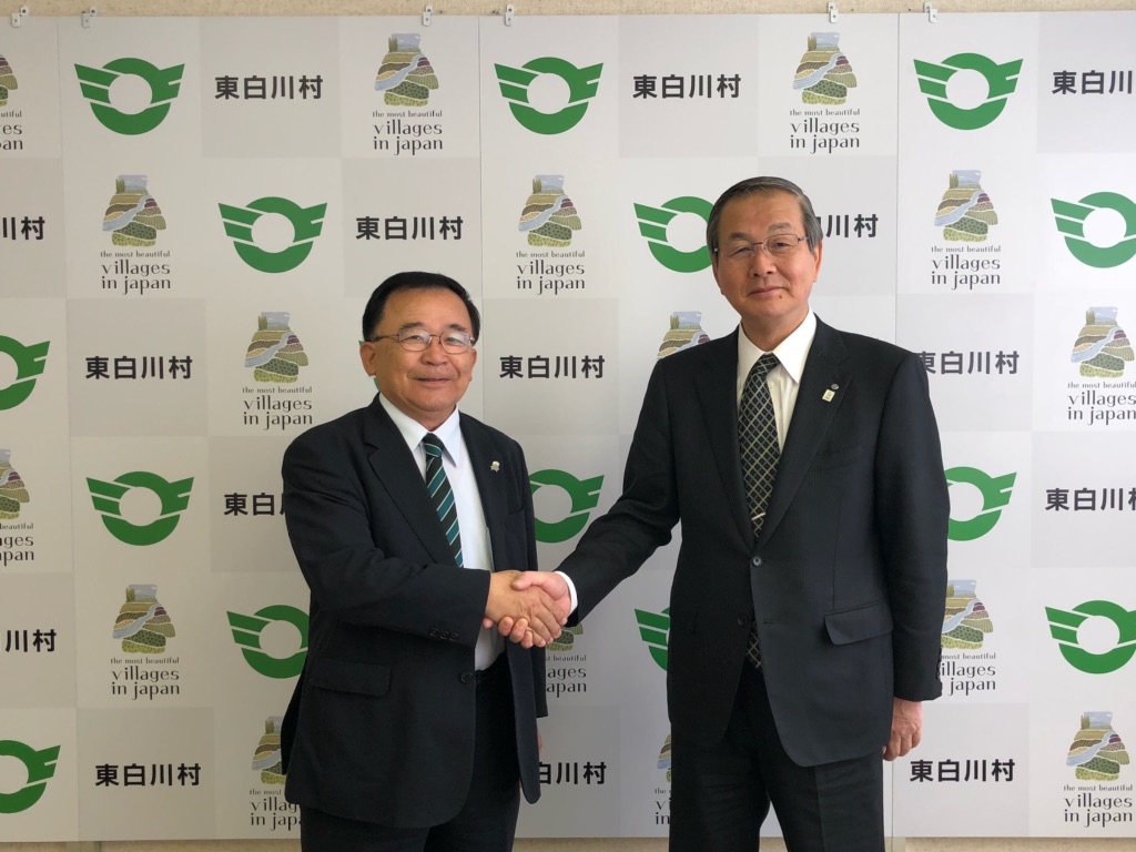 4月28日(土)ツエーゲン金沢戦(15時キックオフ) の「東白川村ホームタウンデー」開催にあたり、4月12日(木)東白川村役場にて、宮田社長が今井俊郎 東白川村長を表敬訪問させて頂きました。