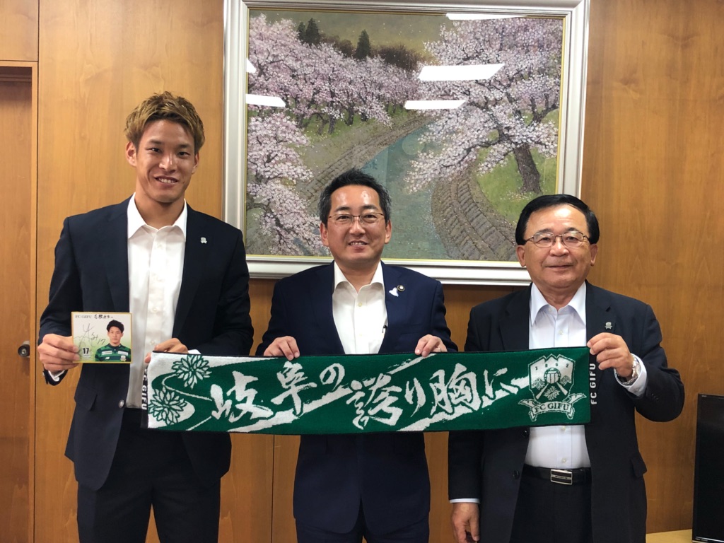 5月26日(土)アルビレックス新潟戦(15時キックオフ) の「各務原市ホームタウンデー」開催にあたり、5月18日(金)各務原市役所にて、宮田社長と各務原市ホームタウン応援大使の藤谷匠選手が、浅野健司 各務原市長を表敬訪問させて頂きました。