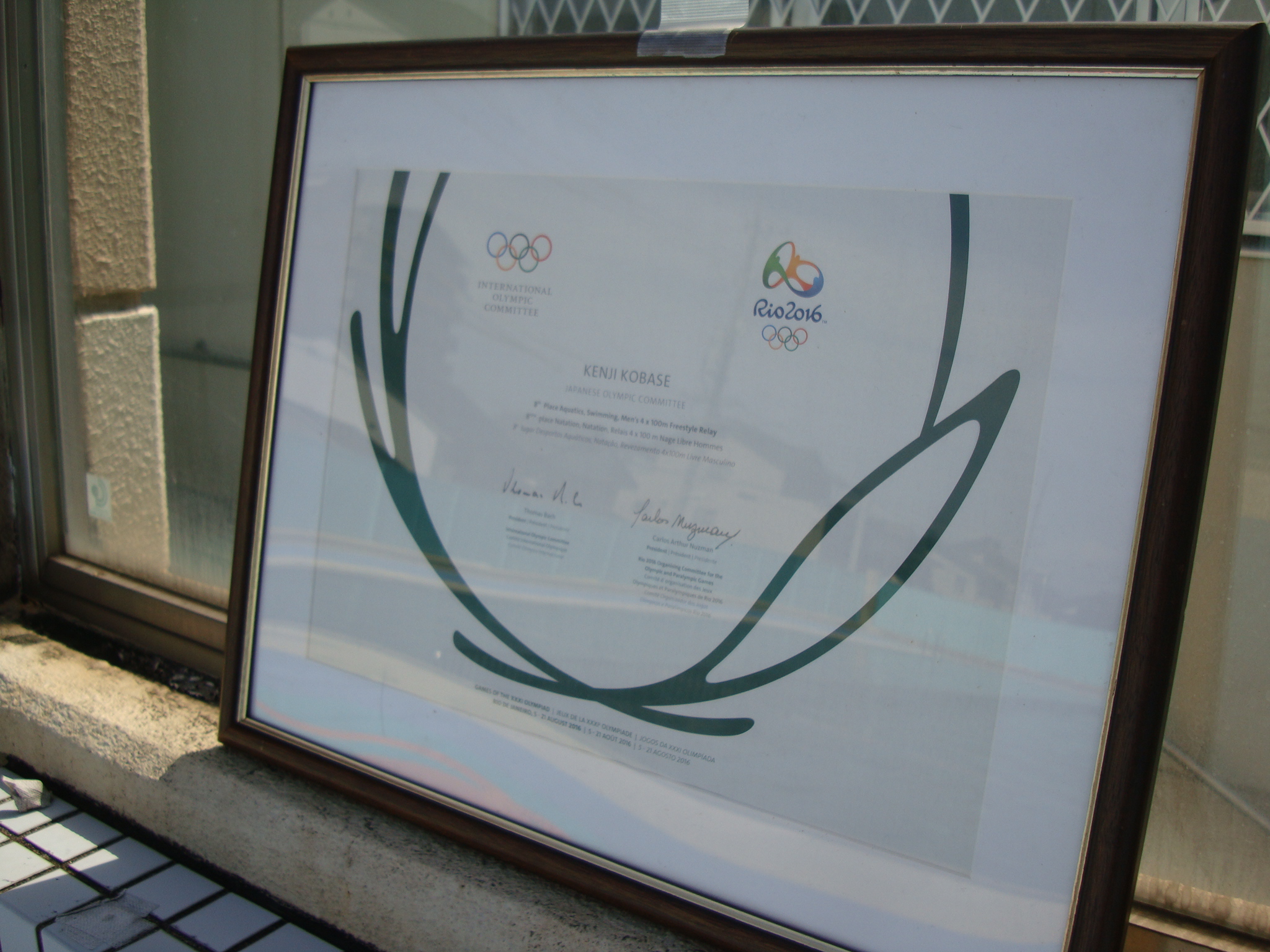 当日は、同小学校の5年生、6年生の約200名を対象に水泳教室が行われました。はじめの挨拶では、小長谷選手からリオオリンピックの賞状と糸井コーチから、過去に獲得したメダルなどが子どもたちに紹介されました。