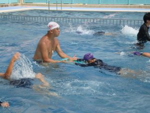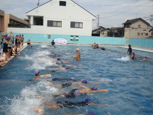 糸井コーチからは、バタ足や息継ぎのアドバイスなど、子どもたちを丁寧に指導して頂きました。今日の水泳教室を通して、初めて25mを泳げるようになった子どもたちもいました。