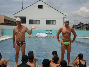 子どもたちは直にオリンピック選手から泳ぎを教えて貰えるということでとても興奮していました。