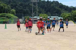7月22日(日)高山市にある、大八グラウンドにて高山市主催による「FC岐阜こどもサッカー教室in高山」が開催され、高山市内に住む小学校1年生~6年生の子どもたち40人が参加しました。