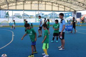 選手も子ども達と一緒に汗だくになりながらボールを追いかけてサッカーを楽しんでいました。